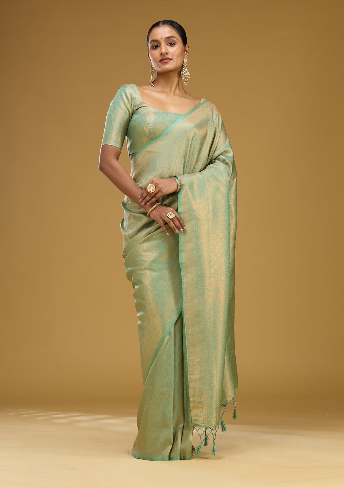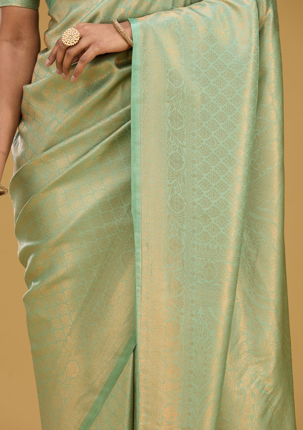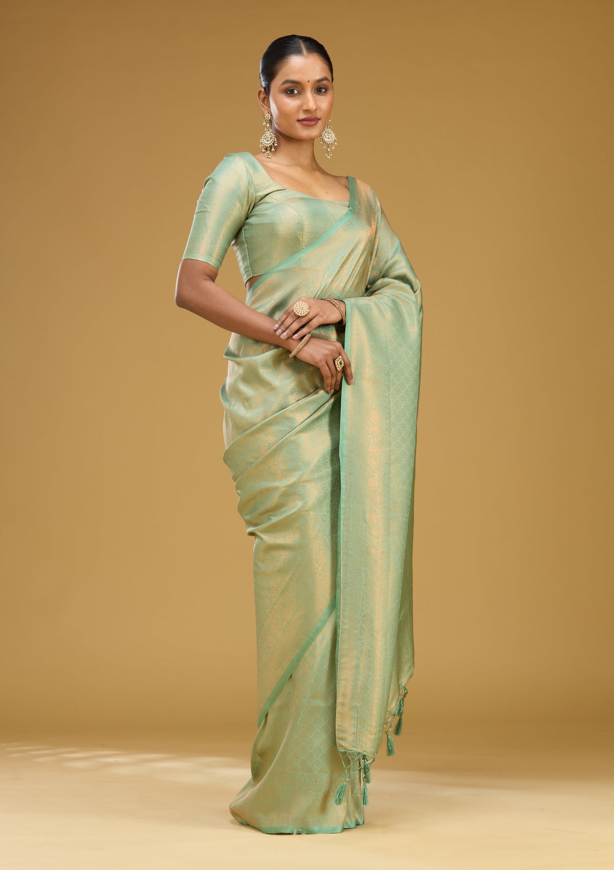 Sea Green Zariwork (Gold) Silk Silk Saree
