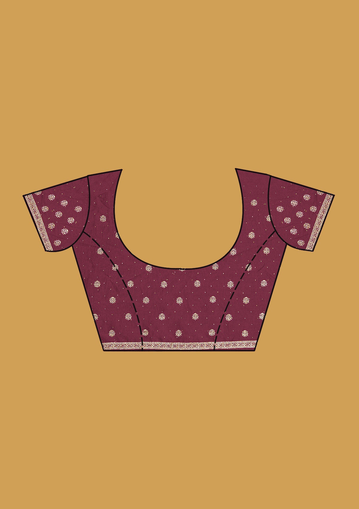 Wine Zariwork (Gold) Soft Raw Silk Saree