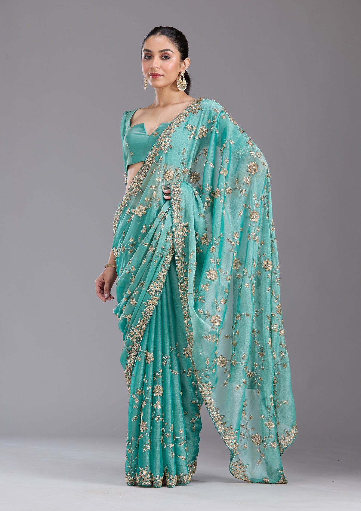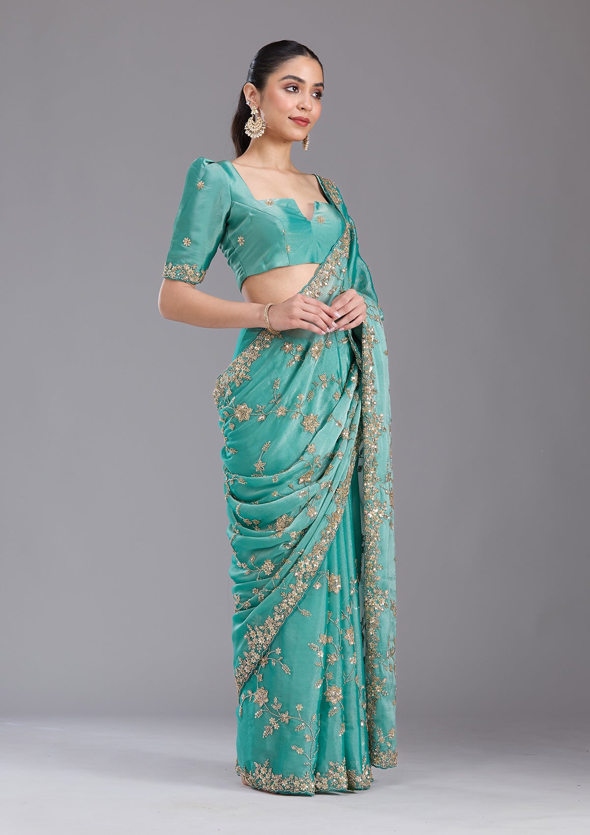 Sea Green Cutdana Tissue Saree