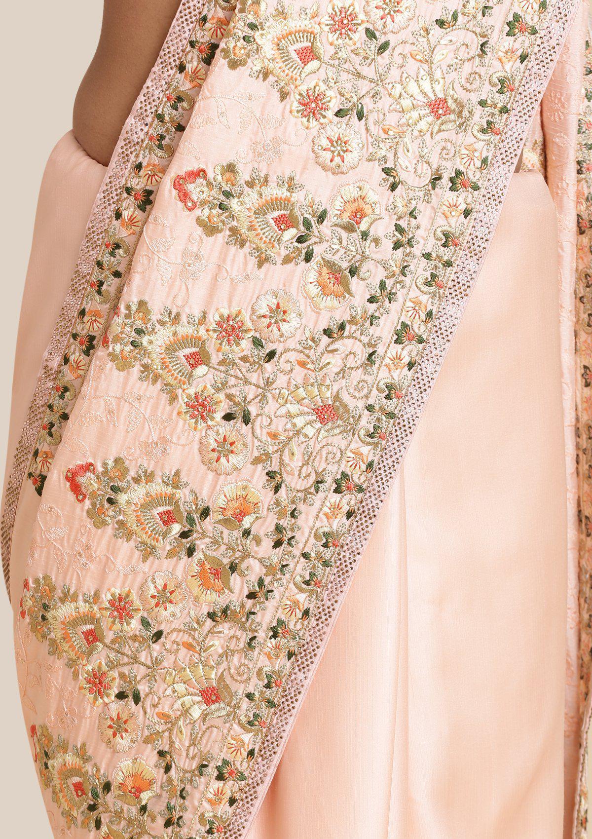 - The Saree Is Embellished With Embroidery
