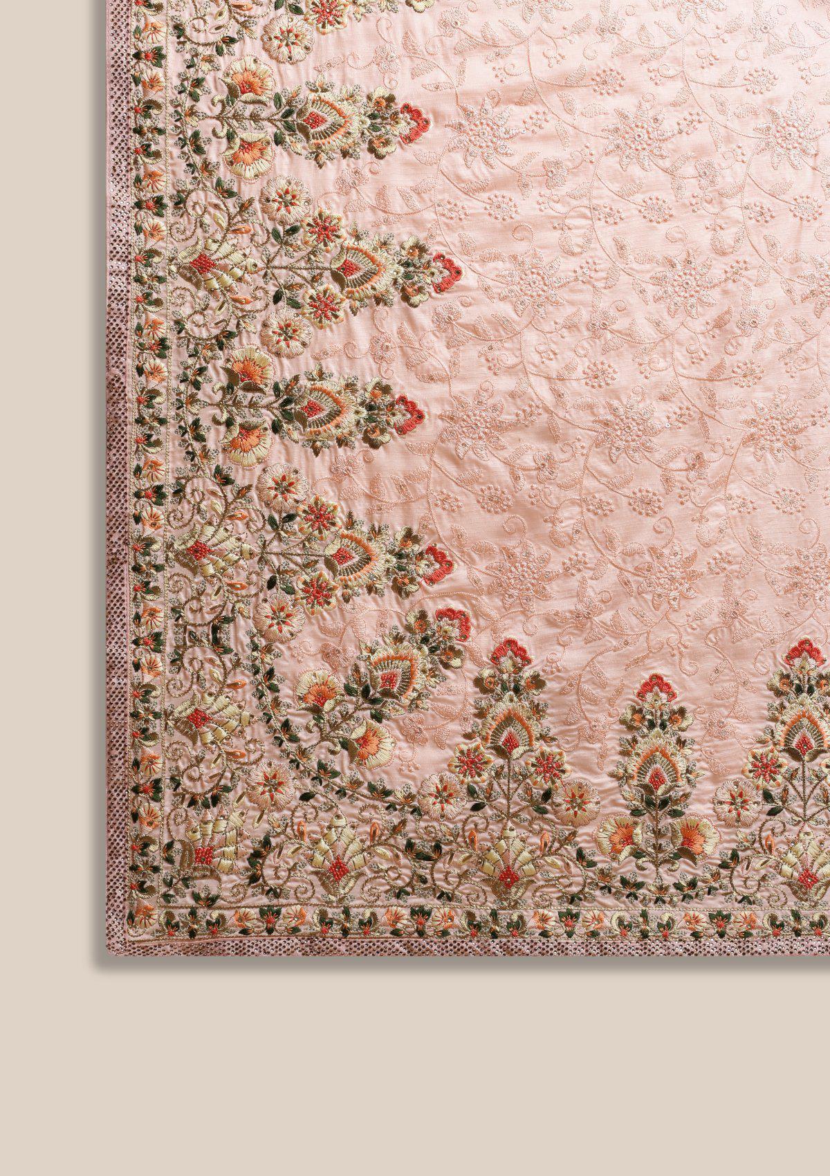 Baby Pink Threadwork Art Silk Saree