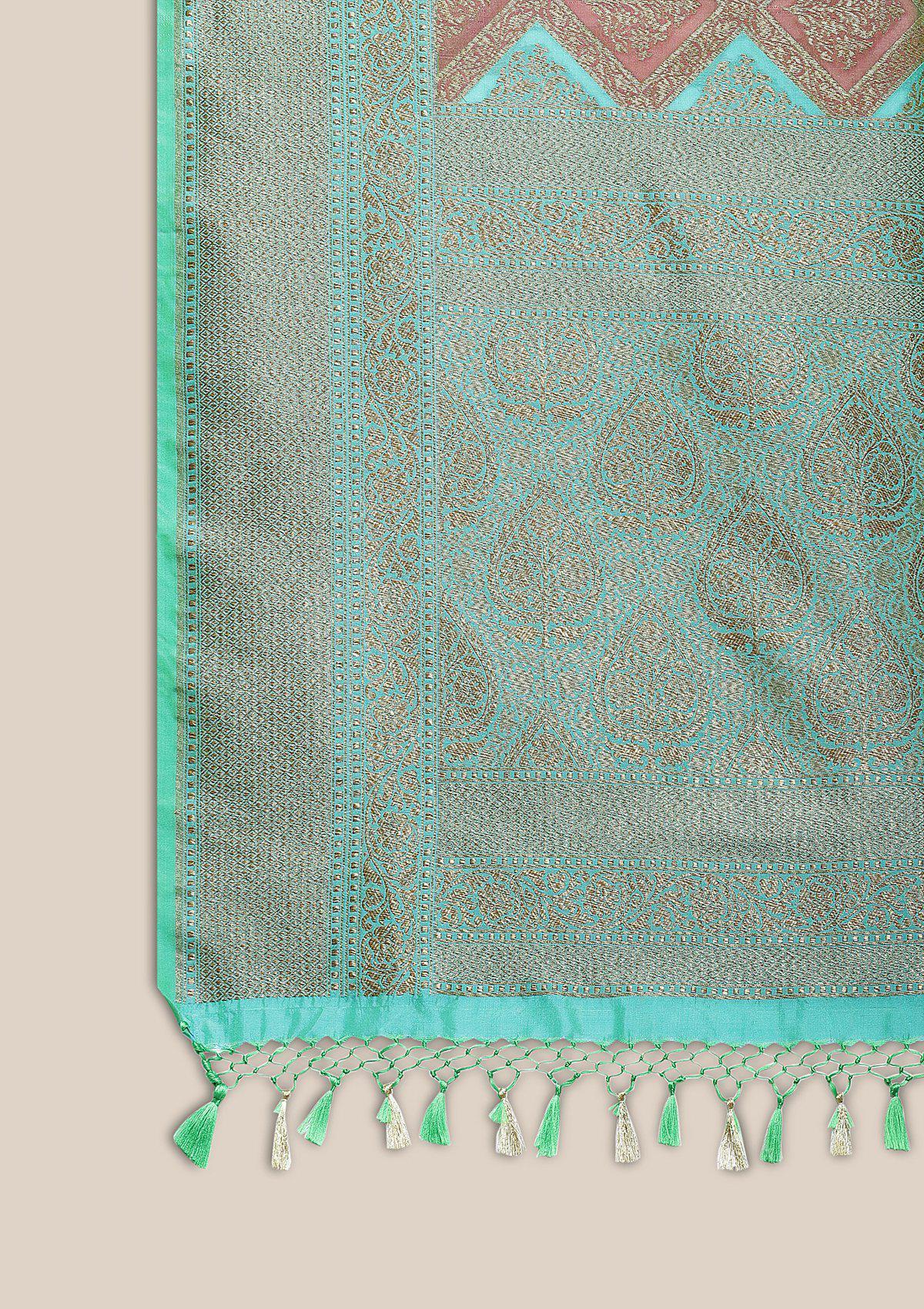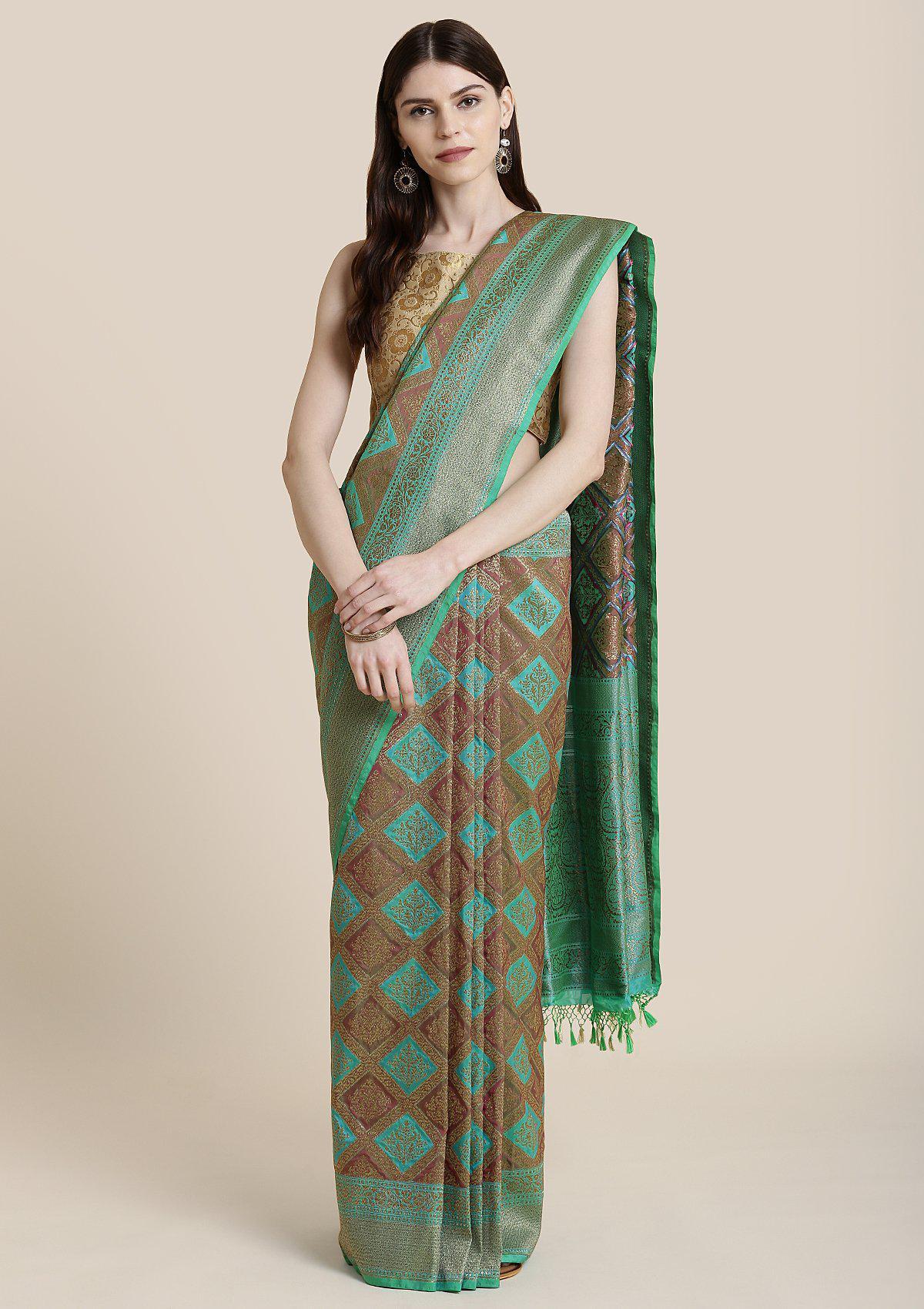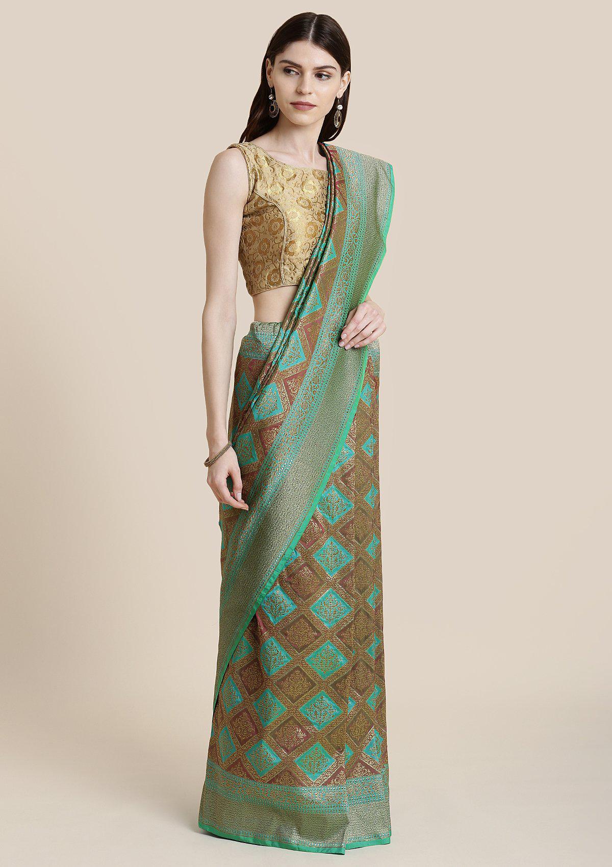 Multi Saree In Banarasi. The Saree Is Embellished With Zariwork Embroidery. Paired With A Matching Unstitched Blouse. Comes With The Koskii Promise Of Superior Quality.