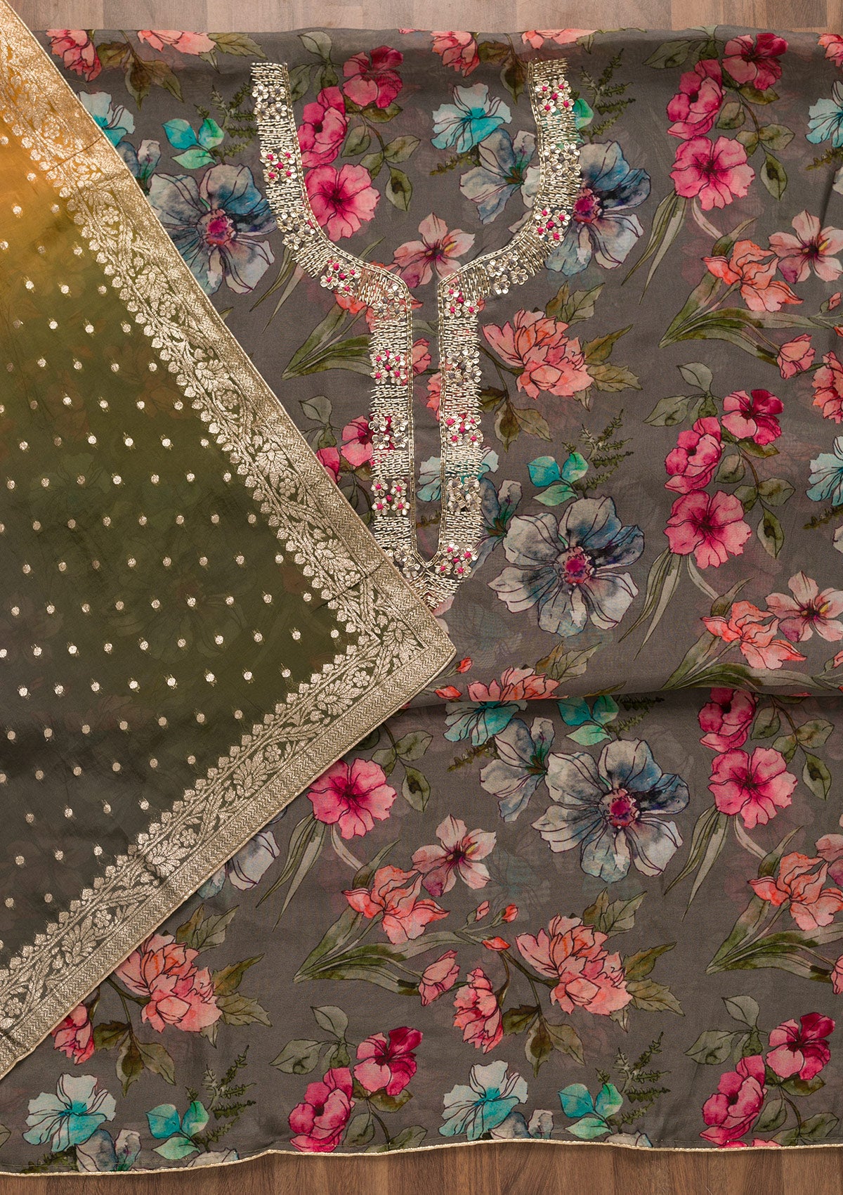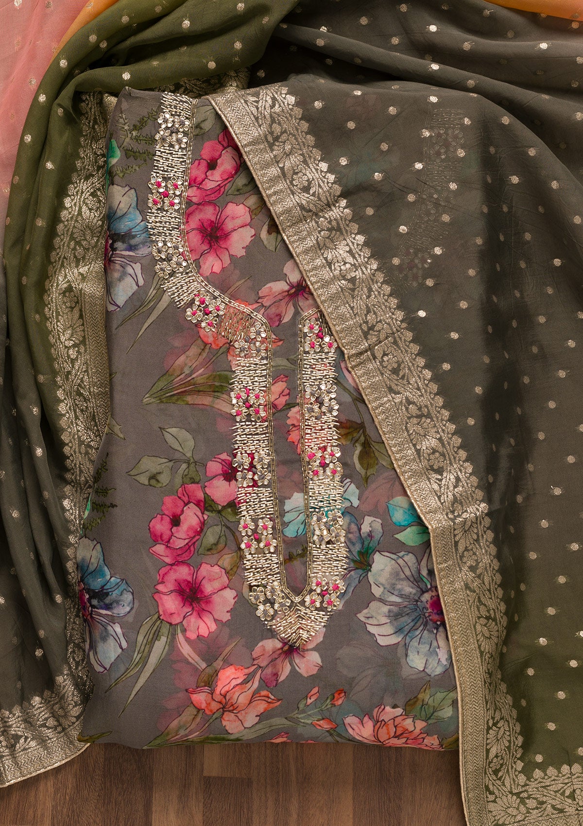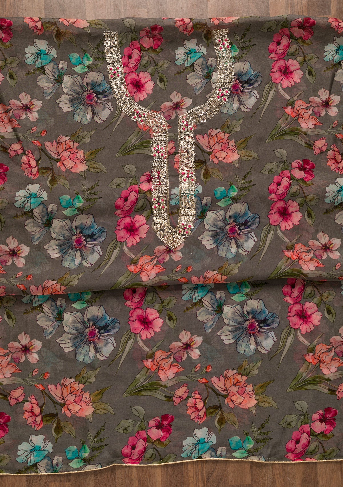 Grey Salwar Suit in Tissue fabric The Salwar Suit is embellished with PrintAccompanied with a bottom and dupatta Comes with the Koskii promise of premium quality.