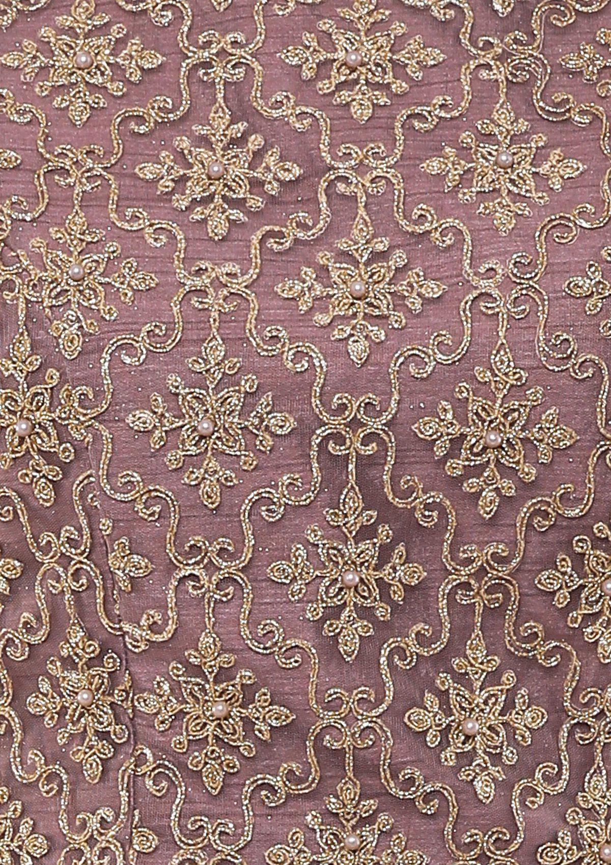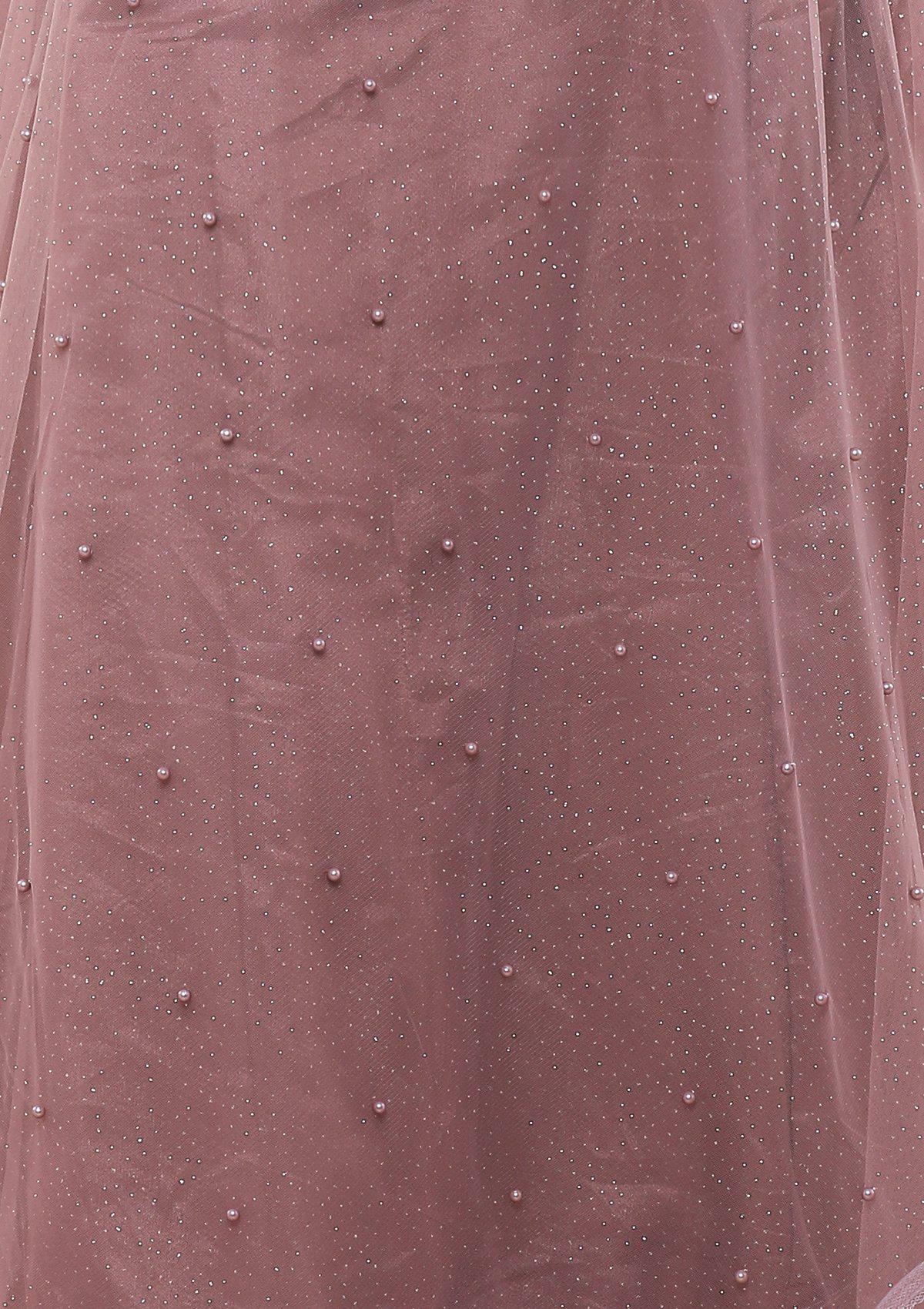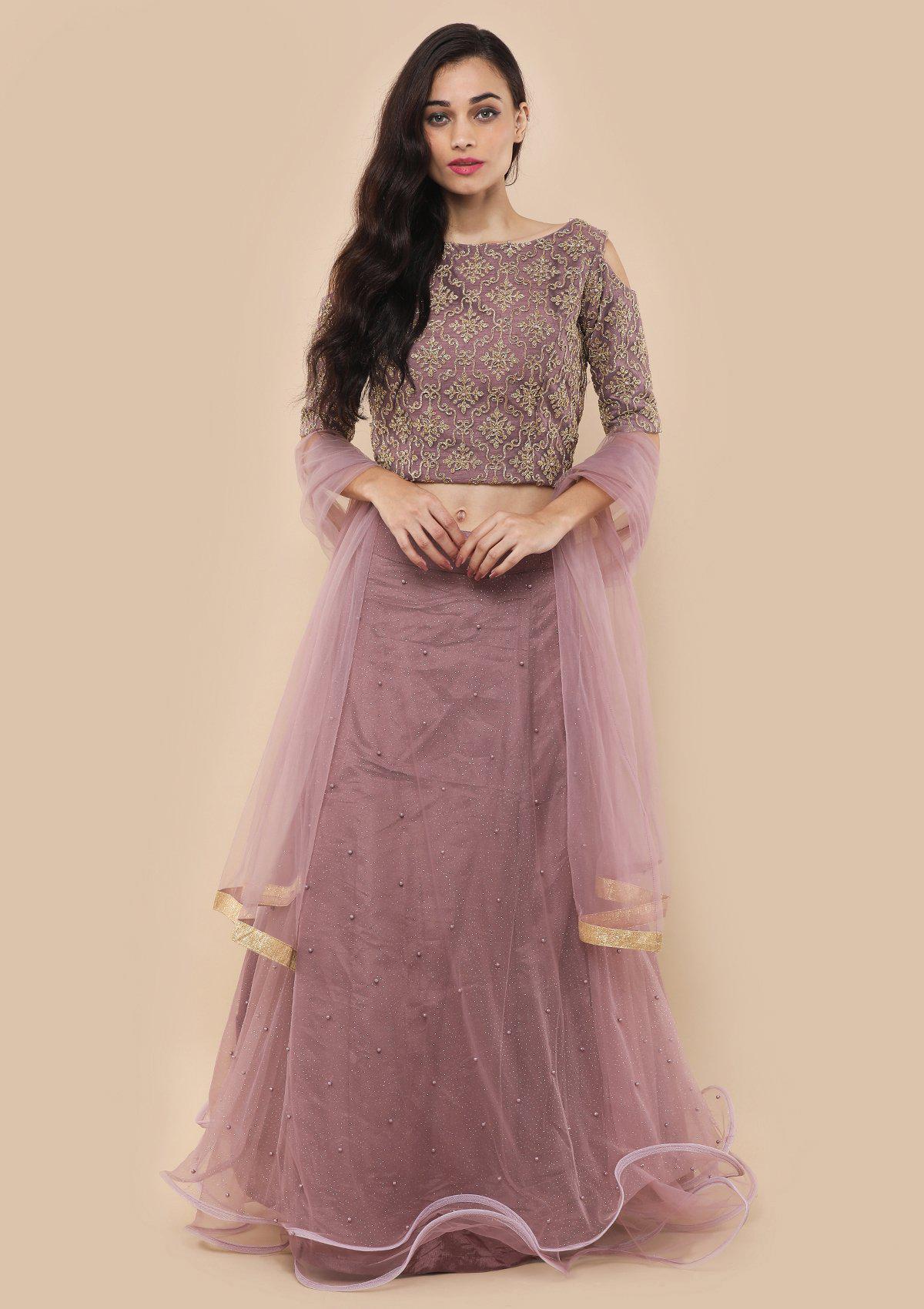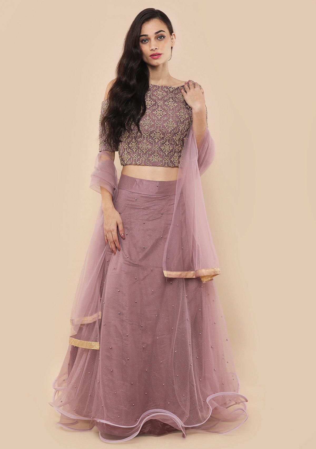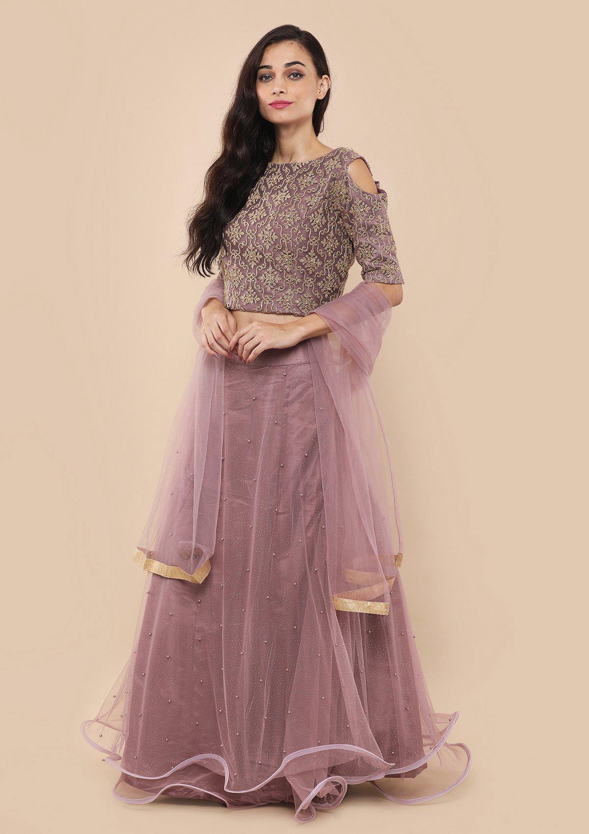 Lavender Pearl Studded Silk Designer Lehenga-Koskii