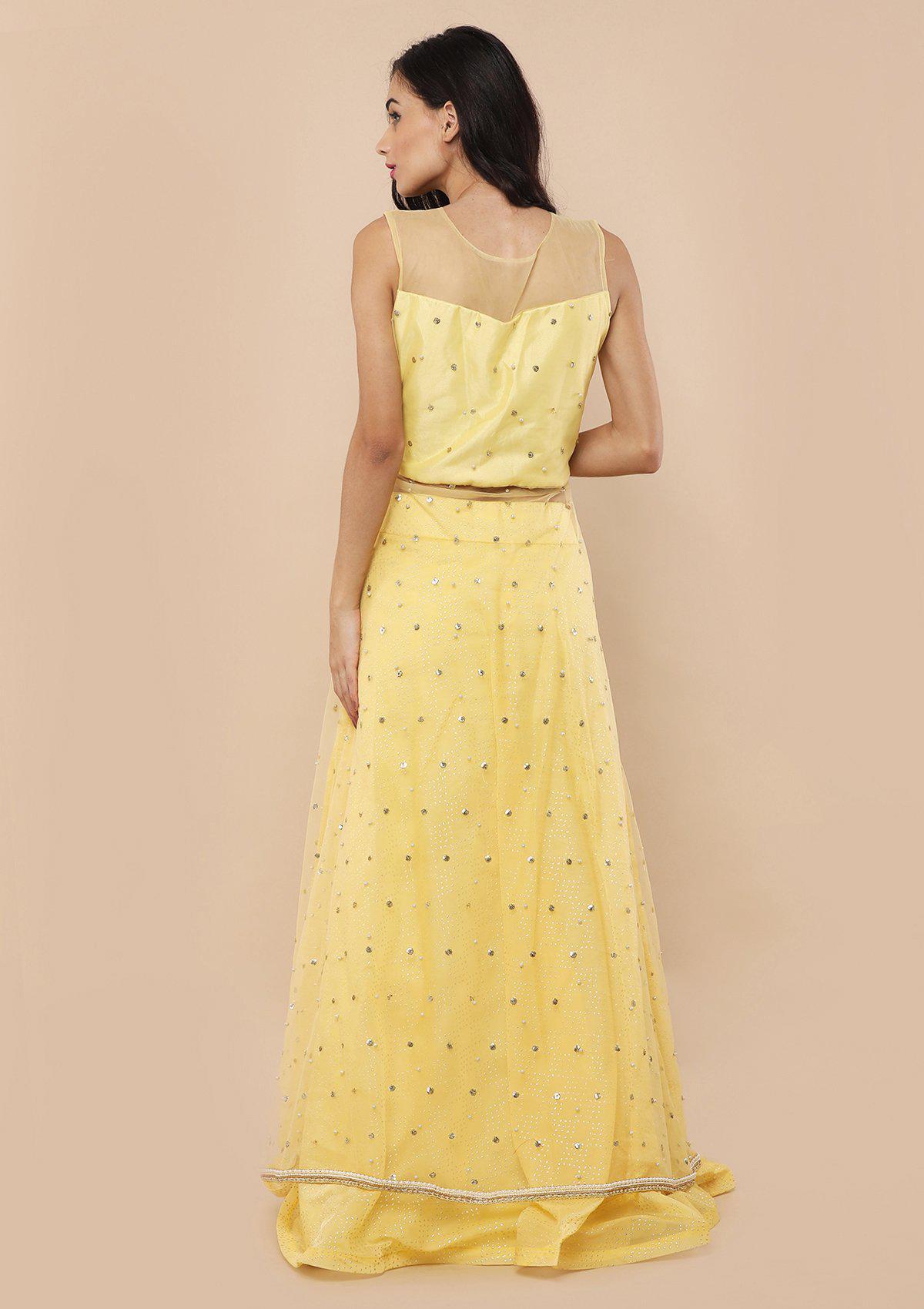 Melon Yellow Stone Work Silk Readymade Lehenga