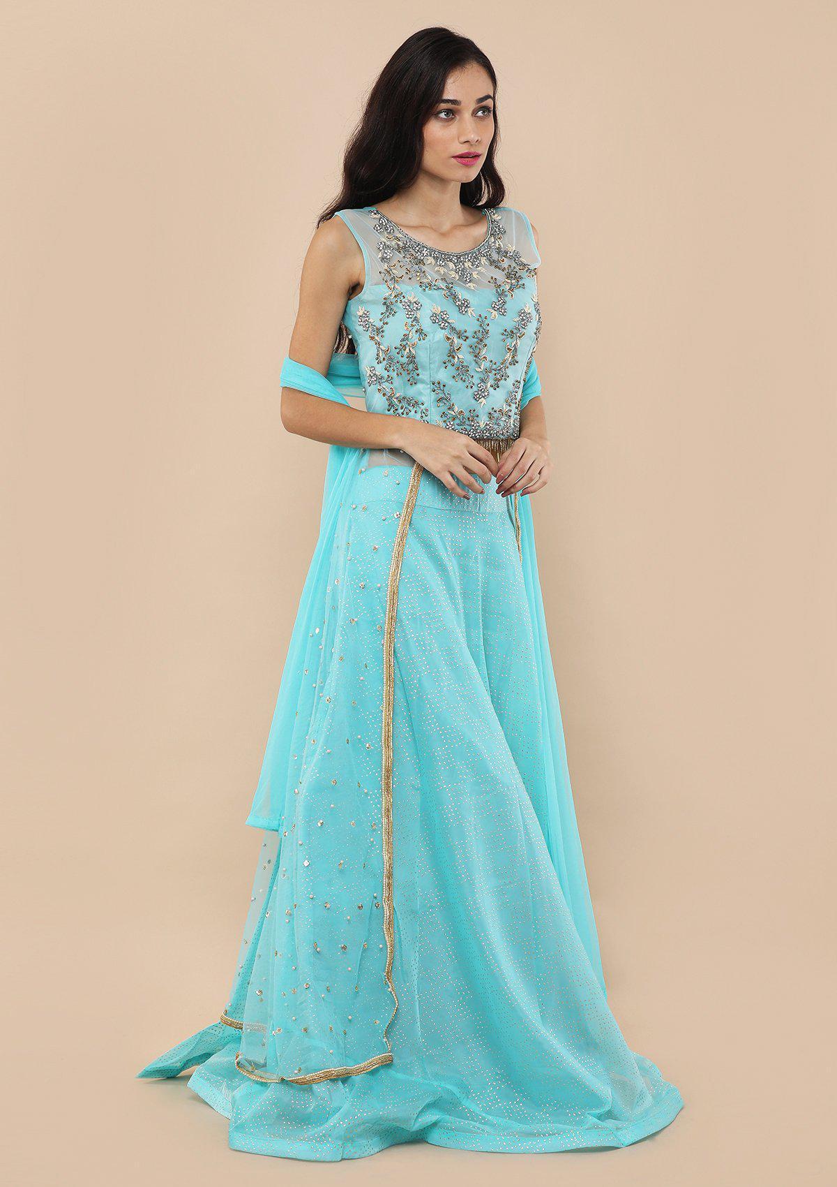 Sky Blue Bead Work Silk Readymade Lehenga