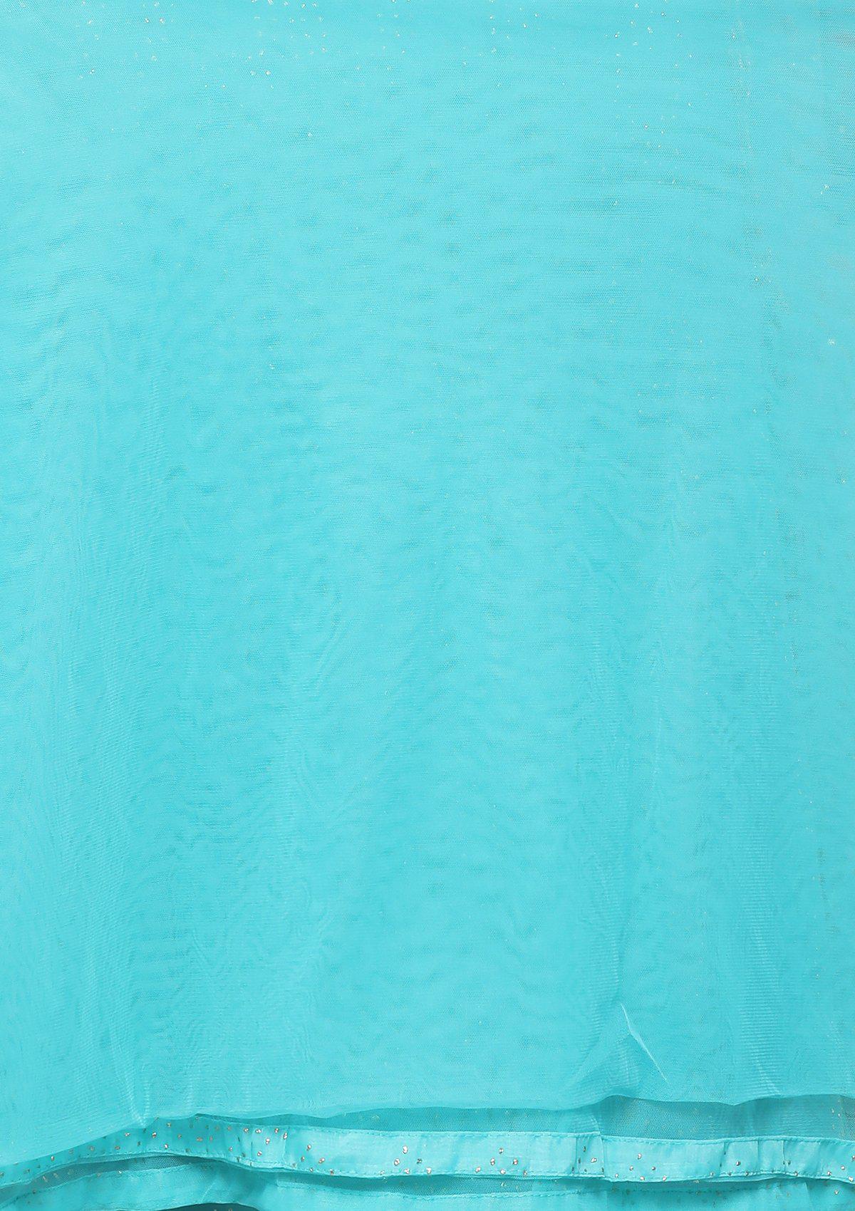 - Turquoise Blue Readymade Lehenga In Tissue