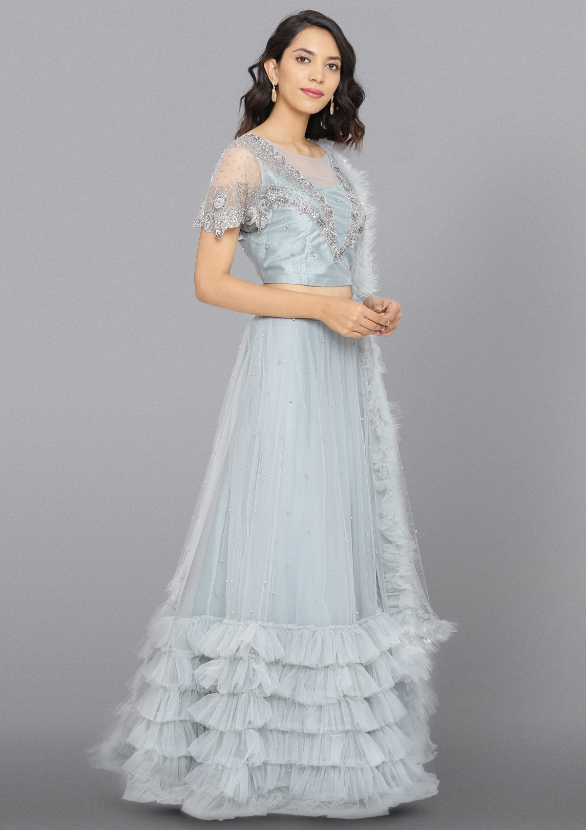 Semi-stitched products come half-stitched. For example, semi-stitched lehengas have a blouse material but the skirt is half-stitched. So, you will have to tailor it to your size.