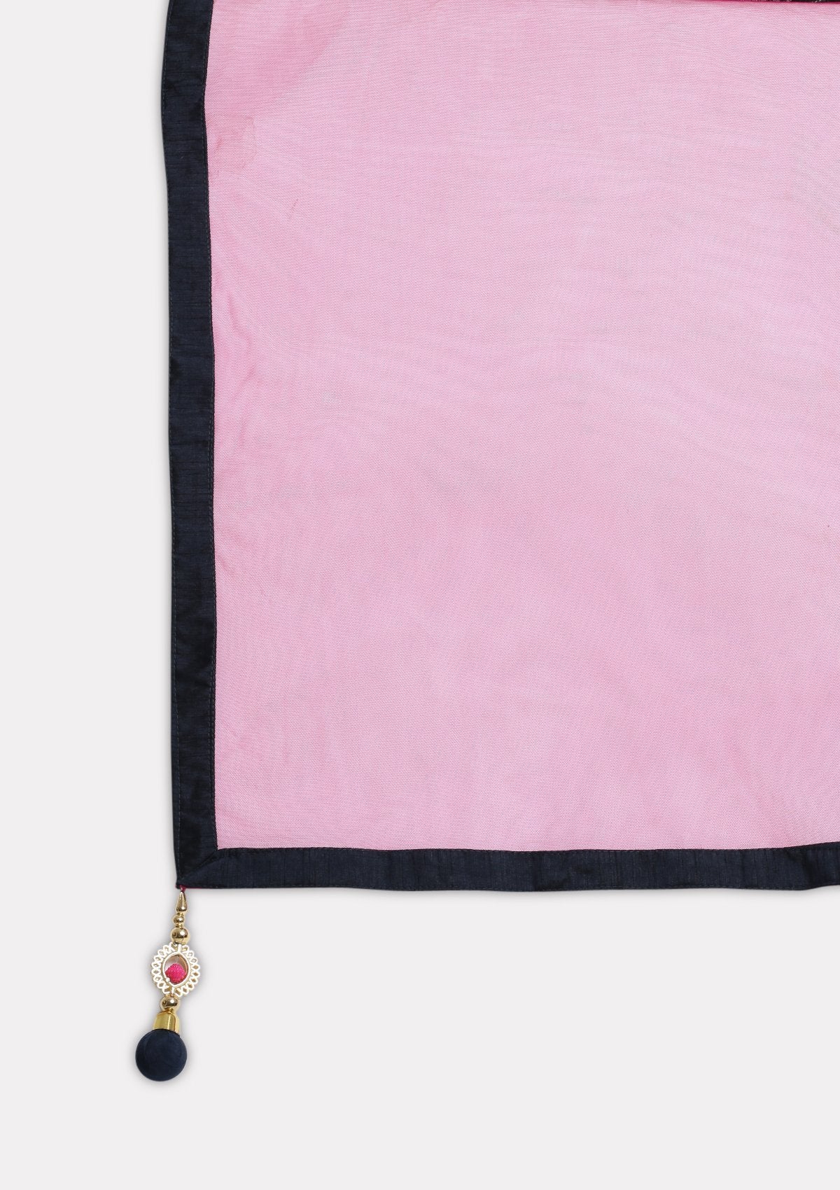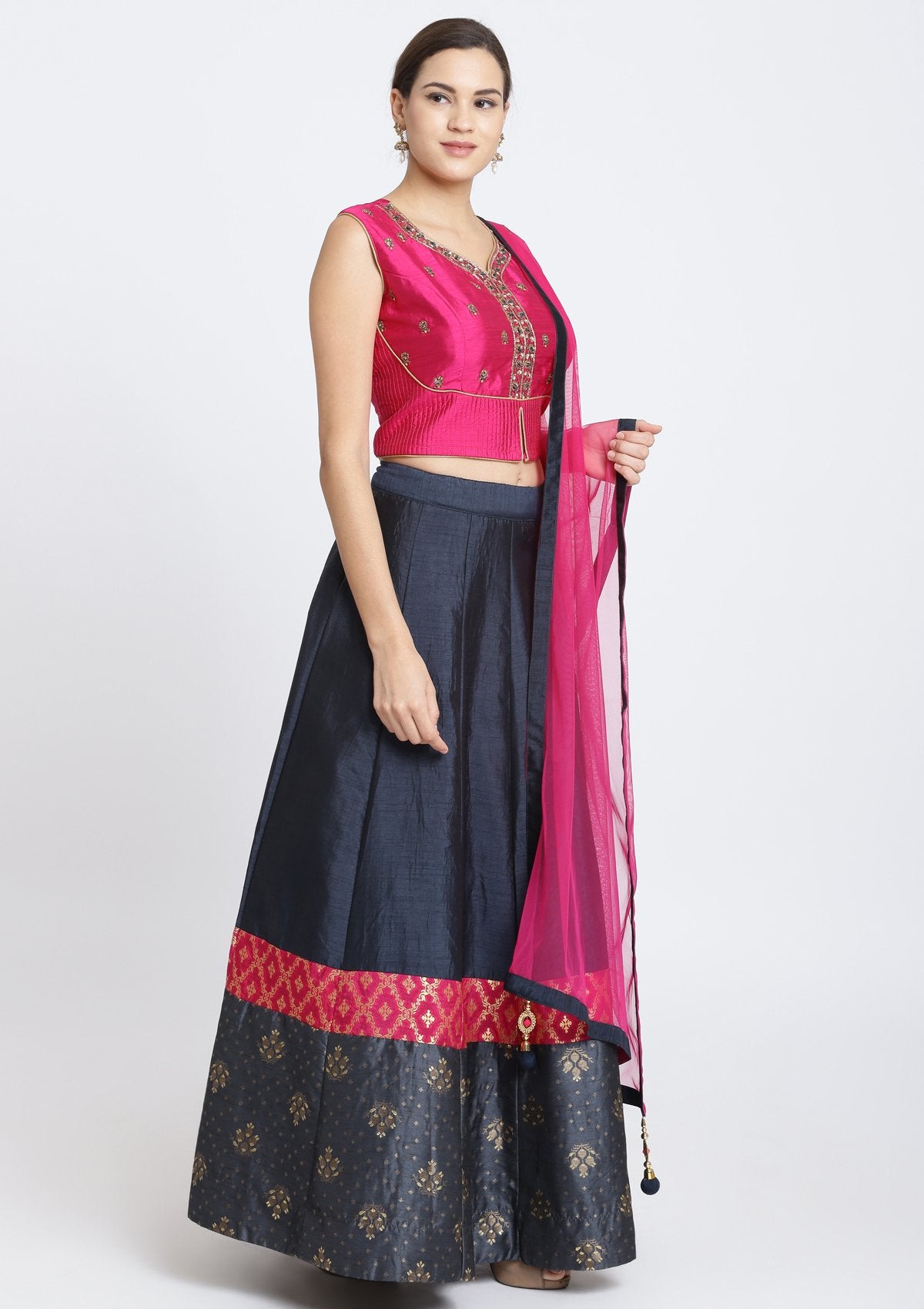 Navy Blue and Fuschia Cutdana Rawsilk Readymade Lehenga
