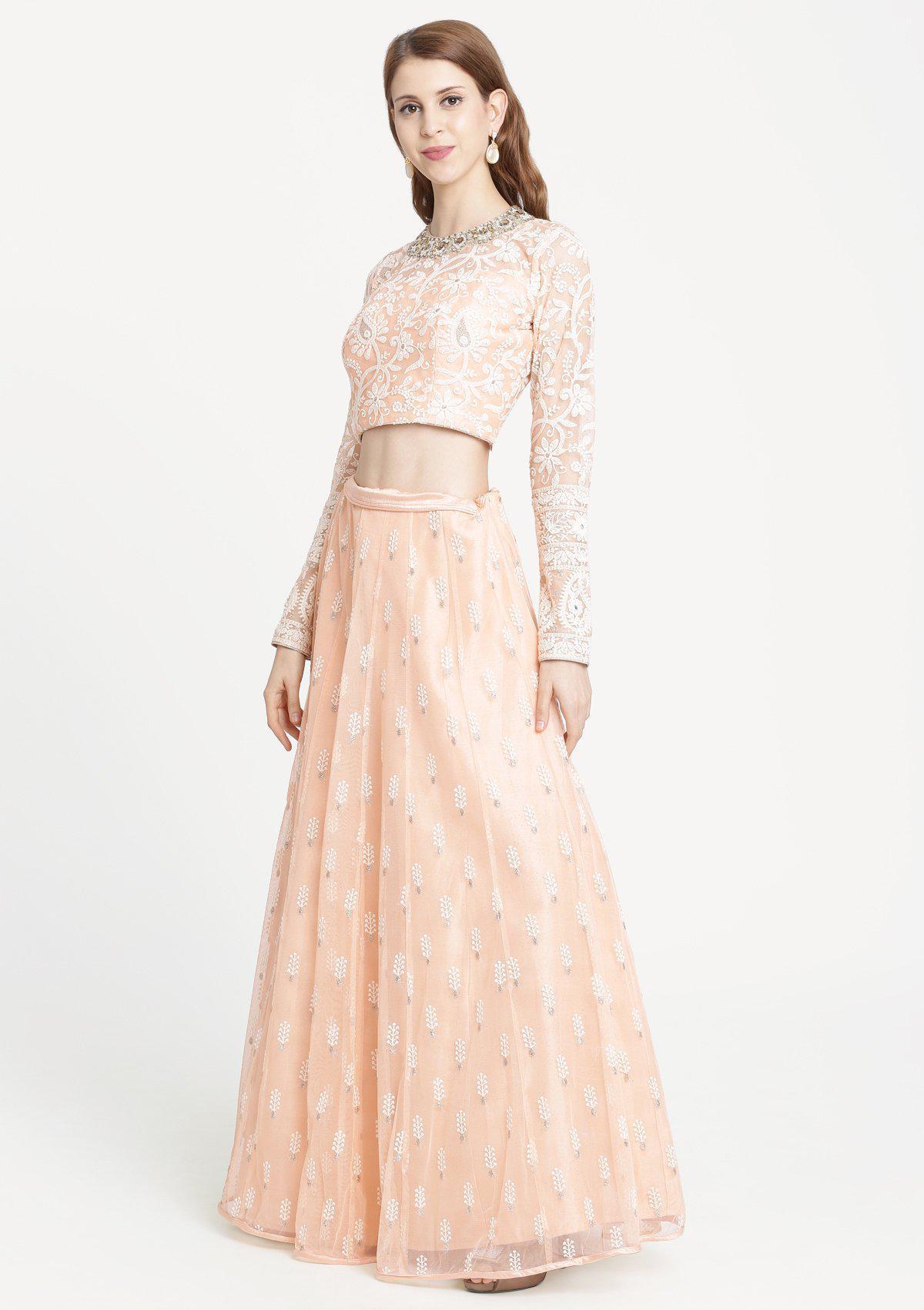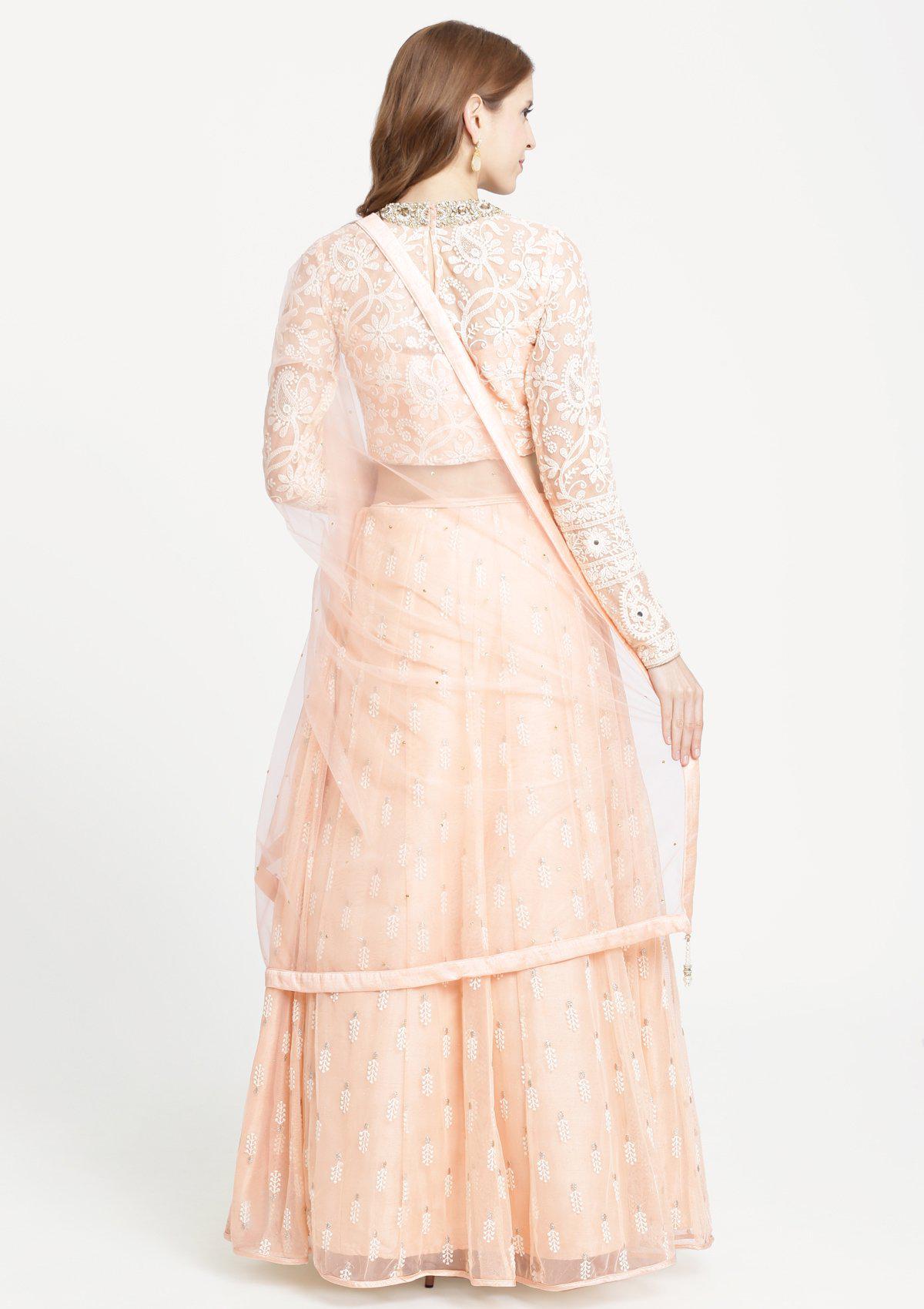 Peach Threadwork Net Designer Lehenga-Koskii
