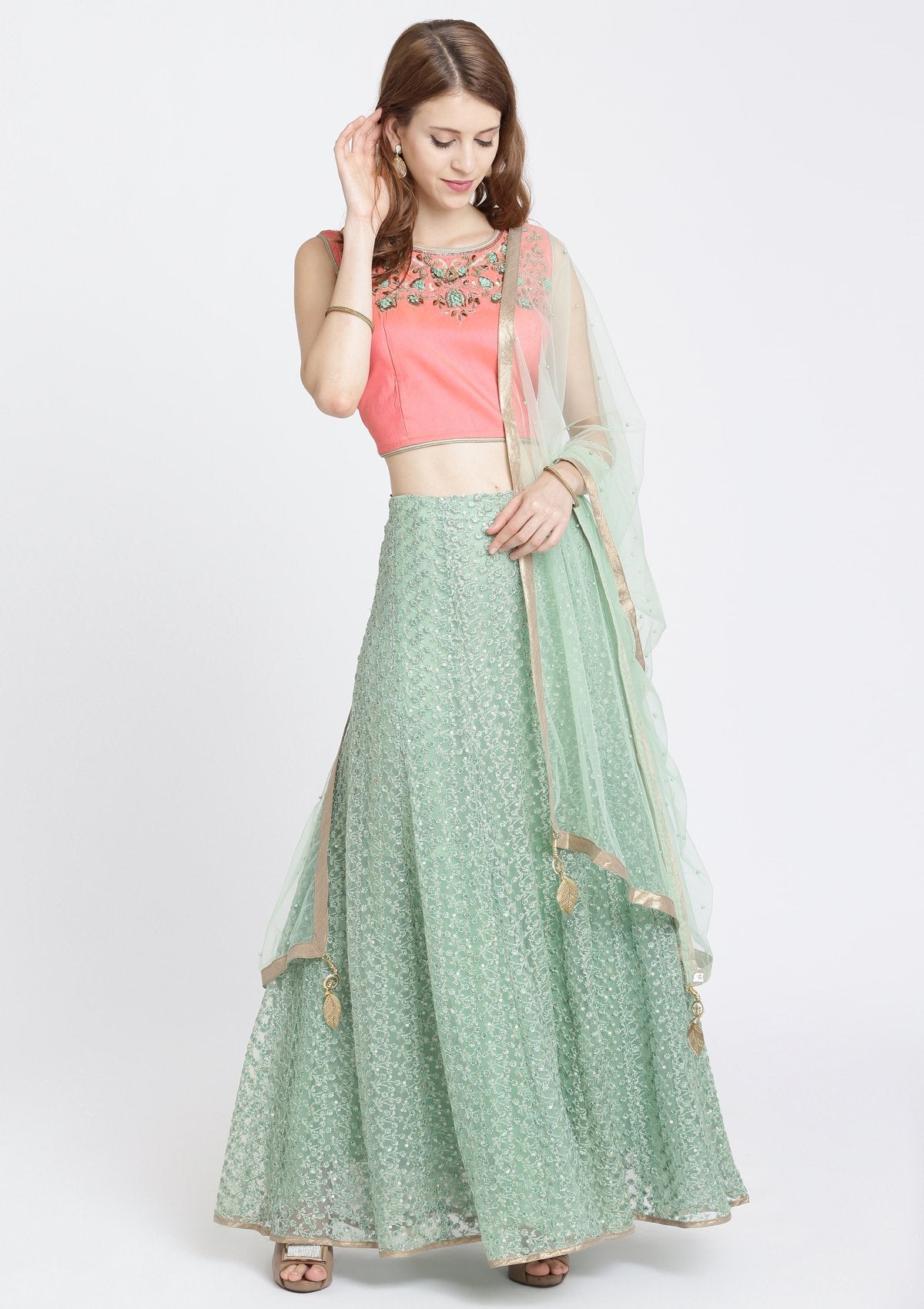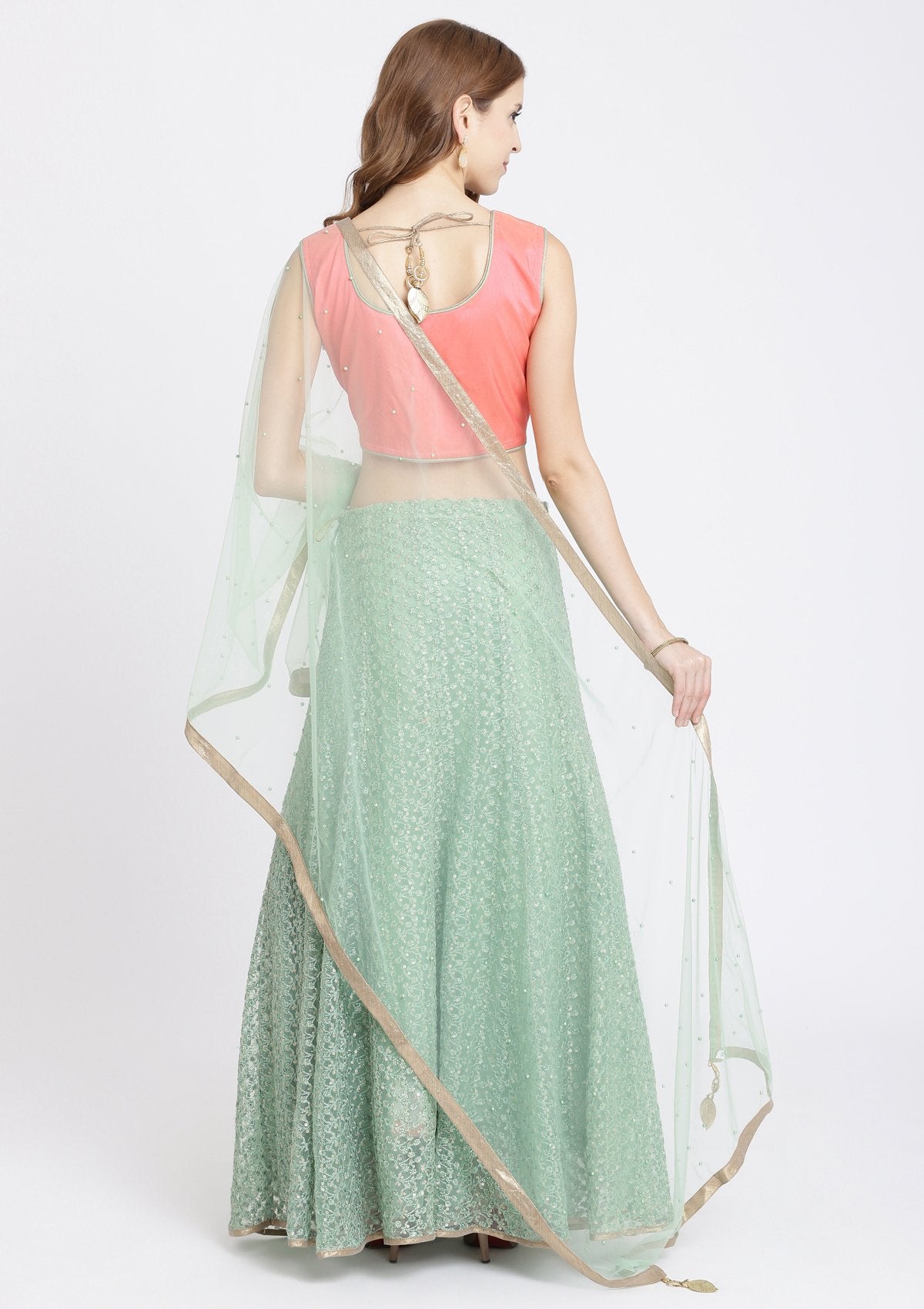 Pista Green Cutdana Net Designer Lehenga-Koskii