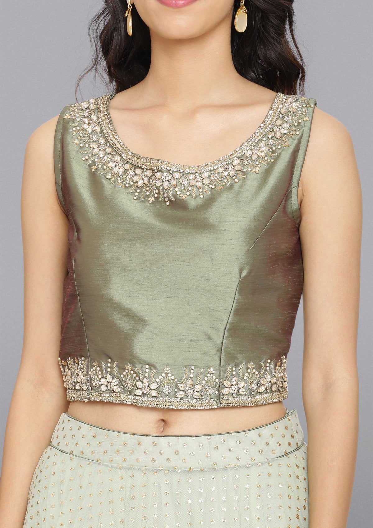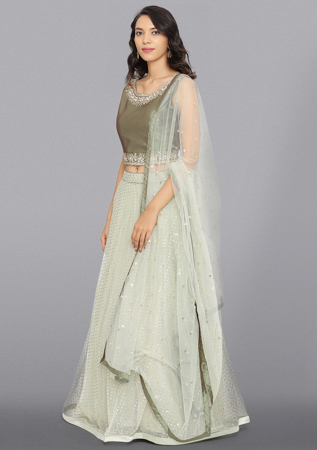 Pista Green Stonework Net Designer Lehenga-Koskii
