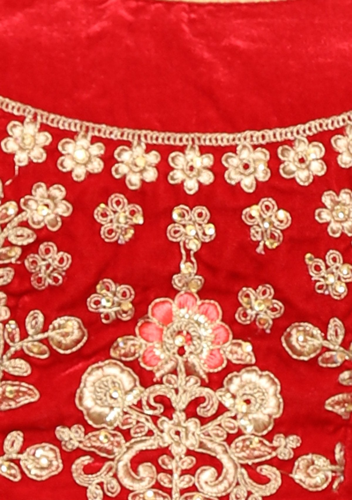 Red Zariwork Velvet Semi Stitched Lehenga