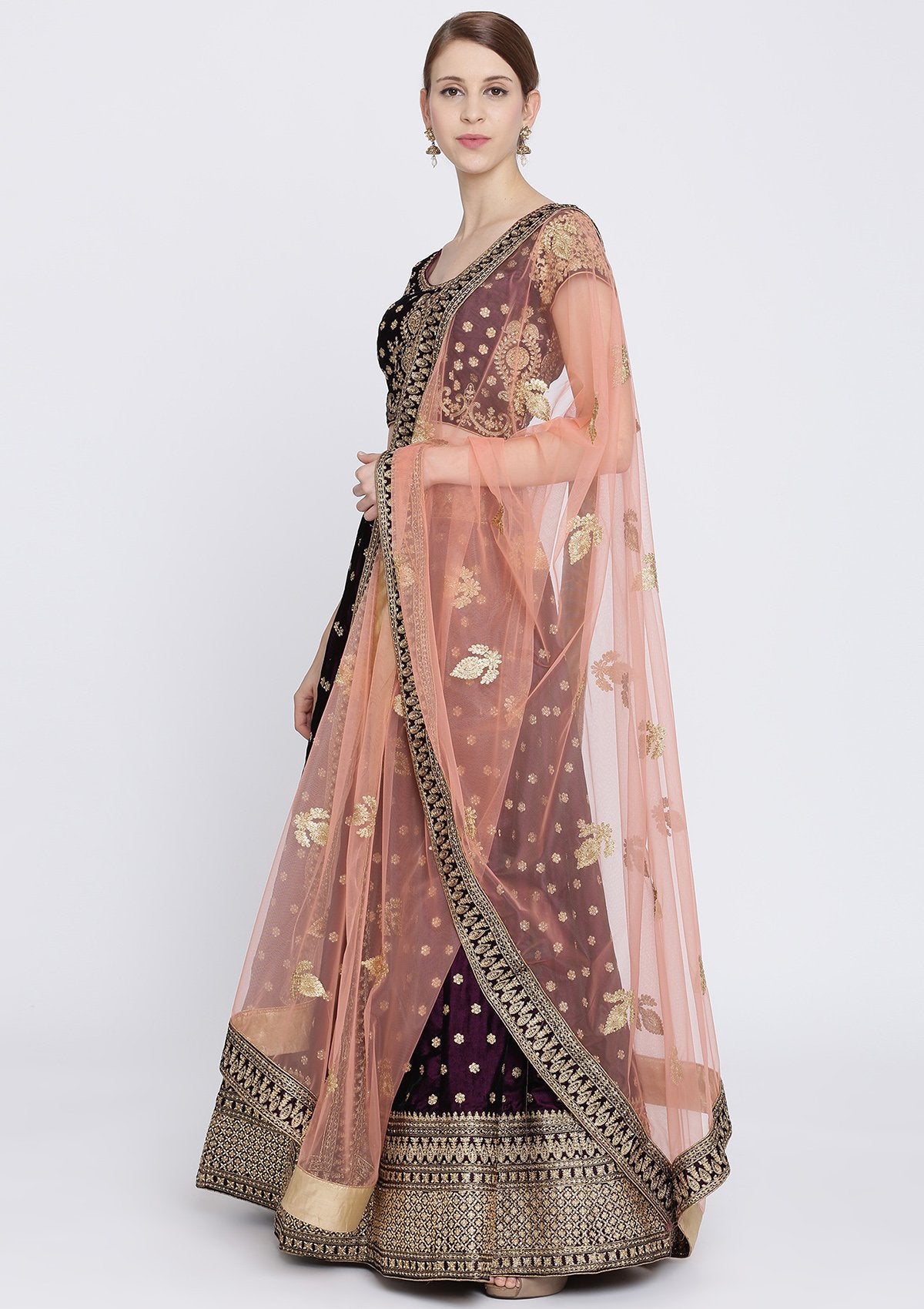 Lehenga: Velvet; Blouse: Velvet; Dupatta: Net