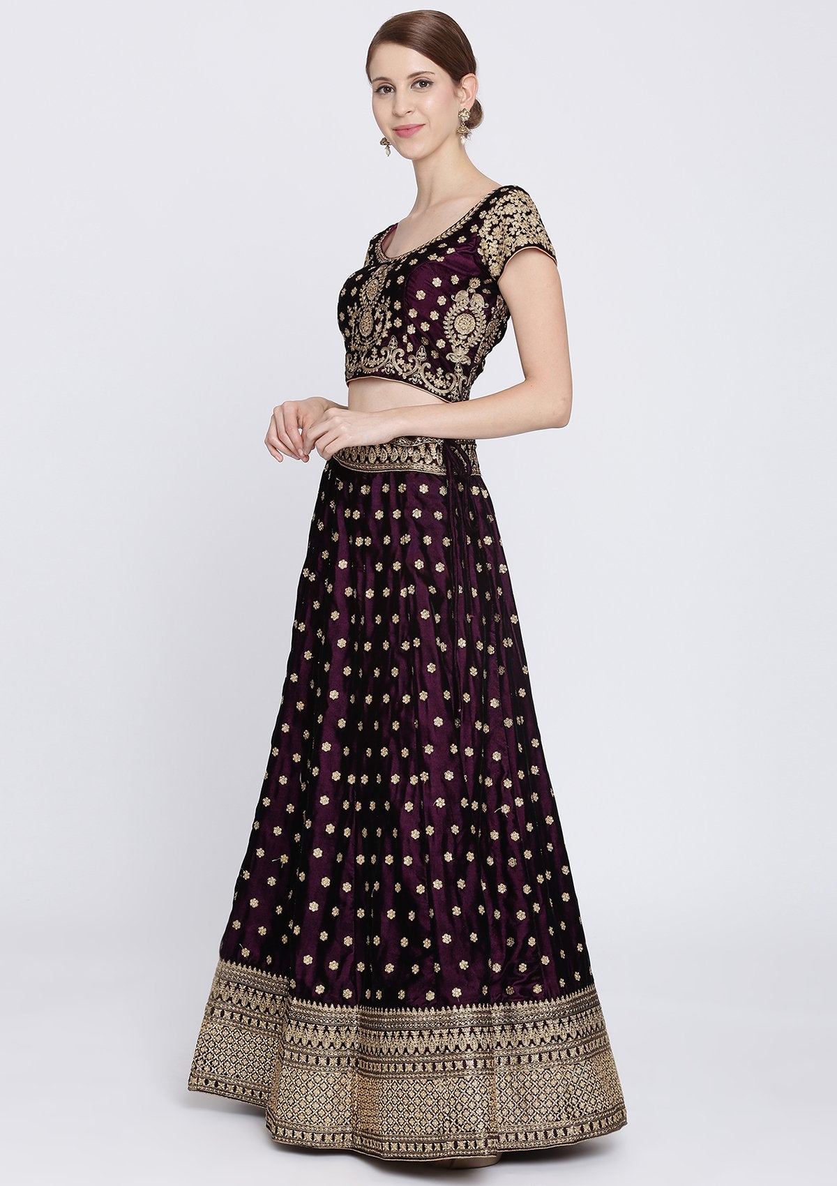 Wine Zariwork Velvet Designer Lehenga-Koskii
