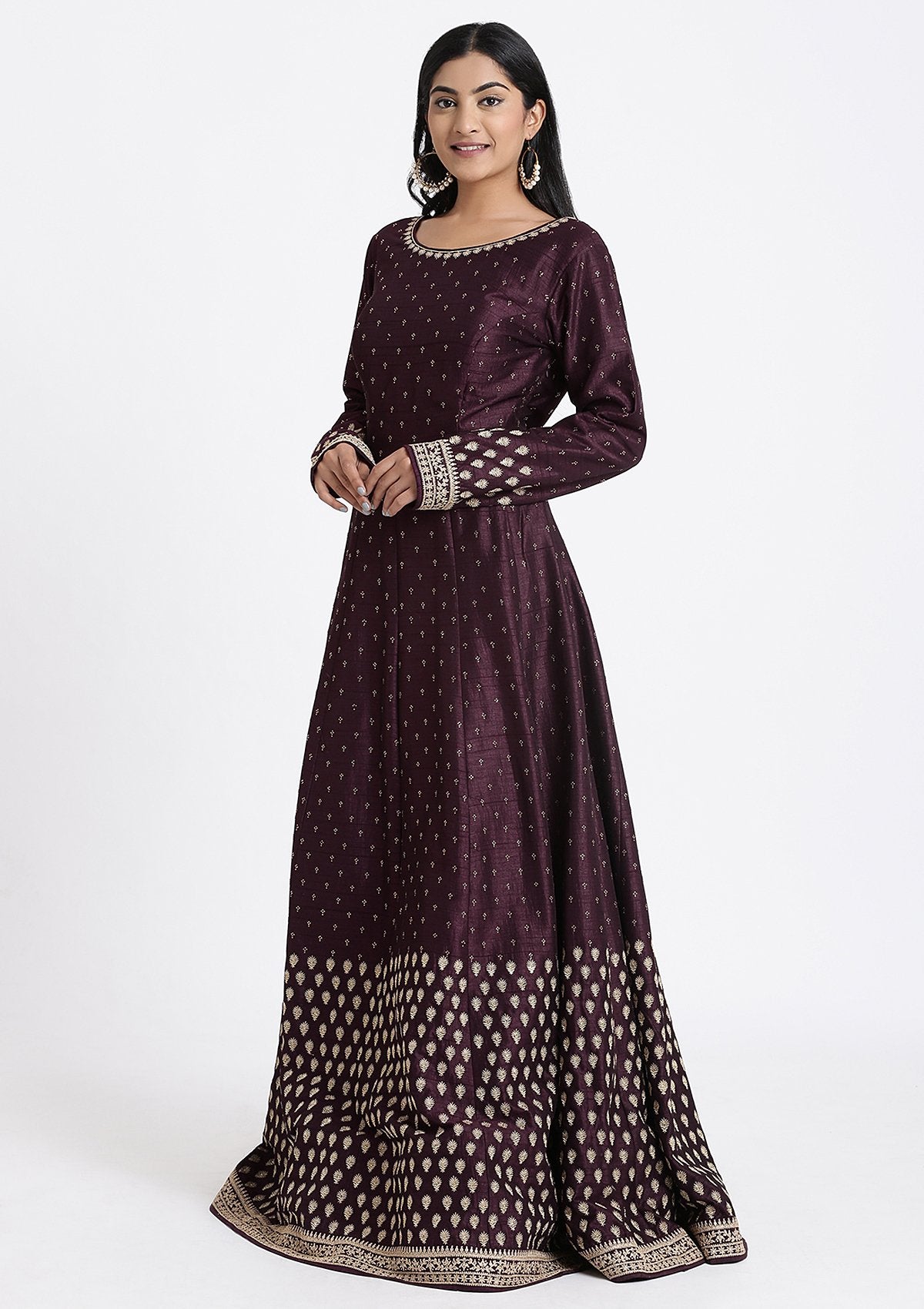 Wine Zariwork Rawsilk Designer Gown