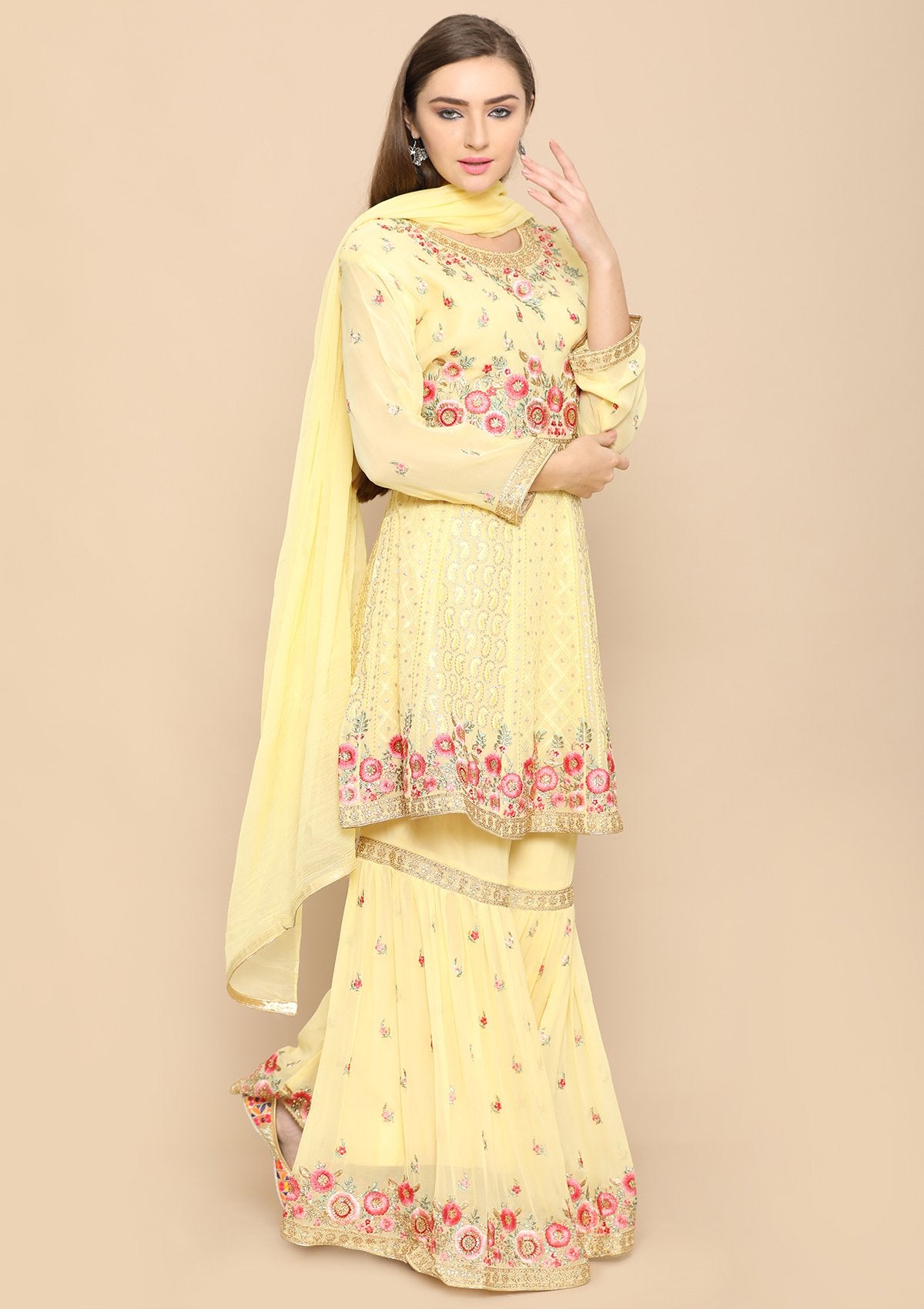 - Lemon Yellow Salwar Suit In Georgette Fabric