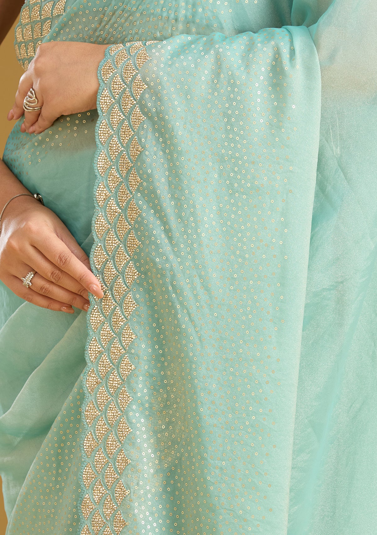 Sea Green Saree in Tissue fabric. The Saree is elevated with Sequins embroidery. It comes with an Unstitched blouse. Comes with the Koskii promise of premium quality.