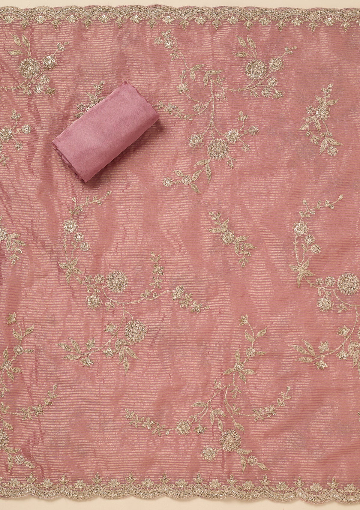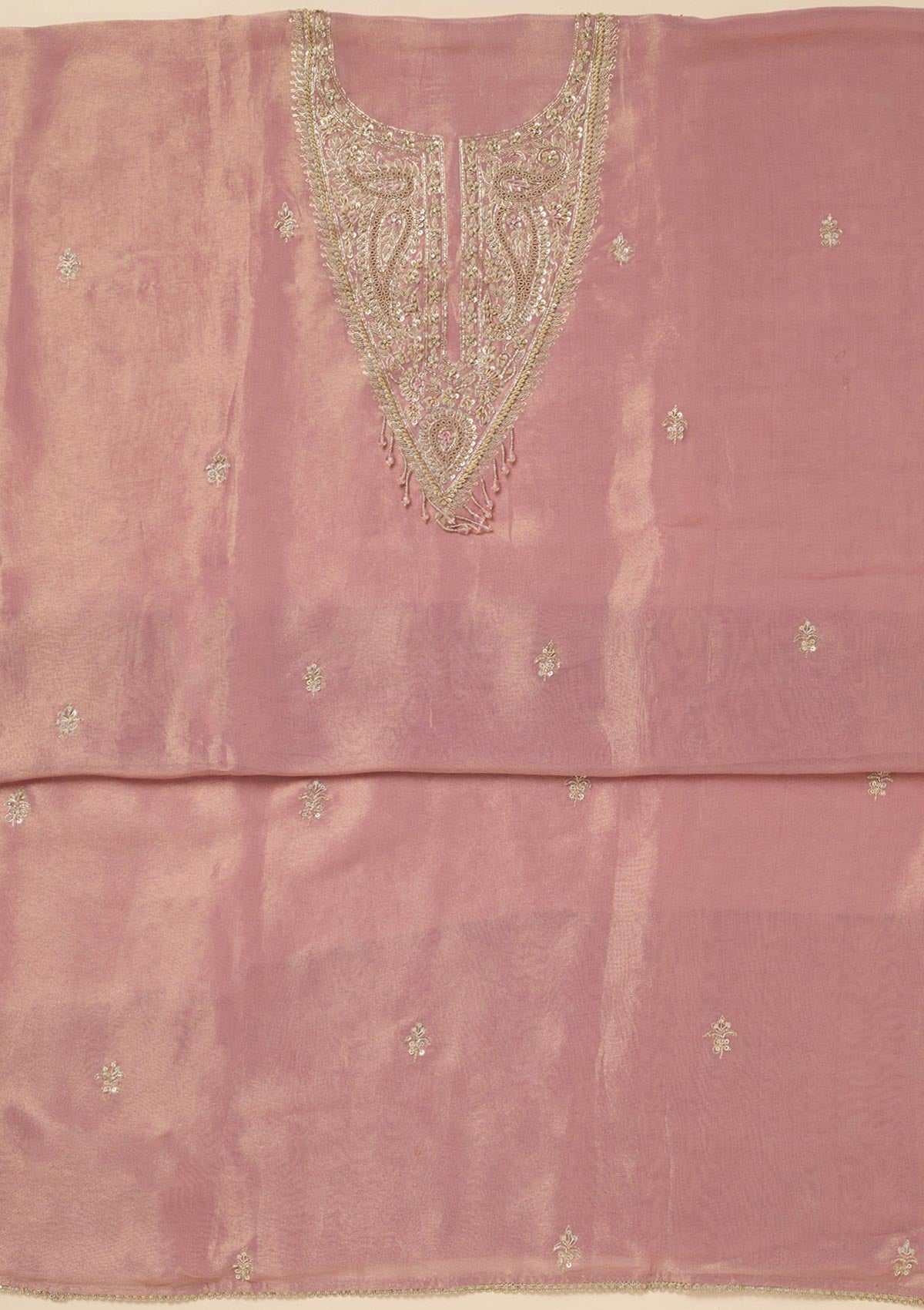 Pink Sequins Organza Unstitched Salwar Suit