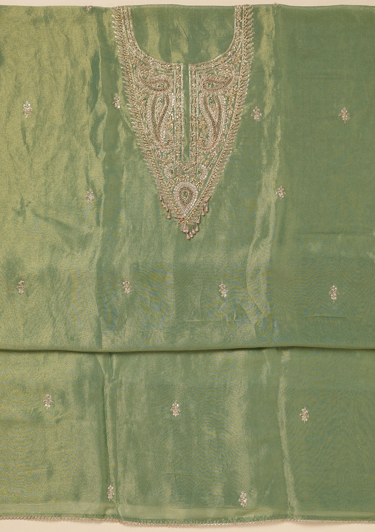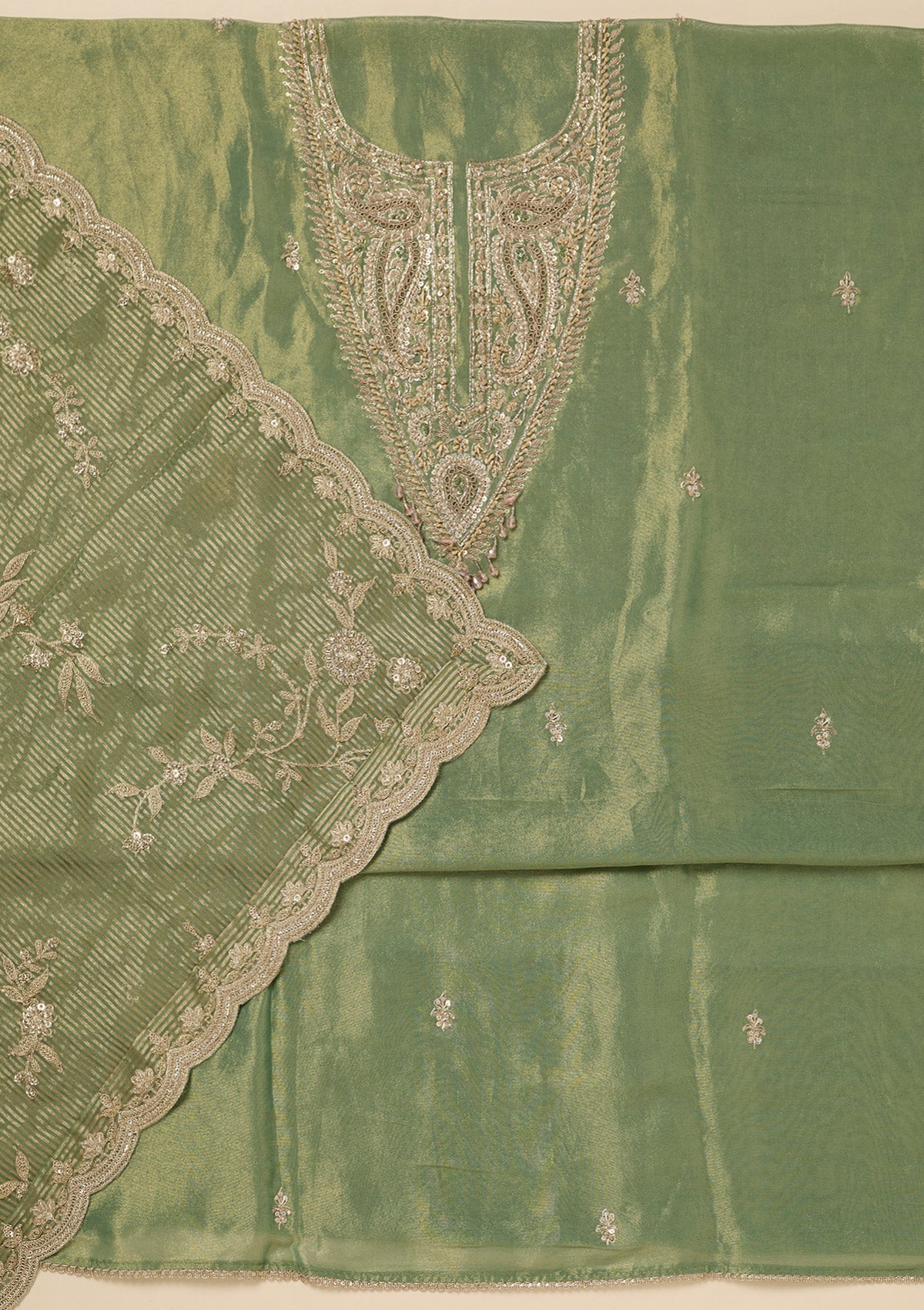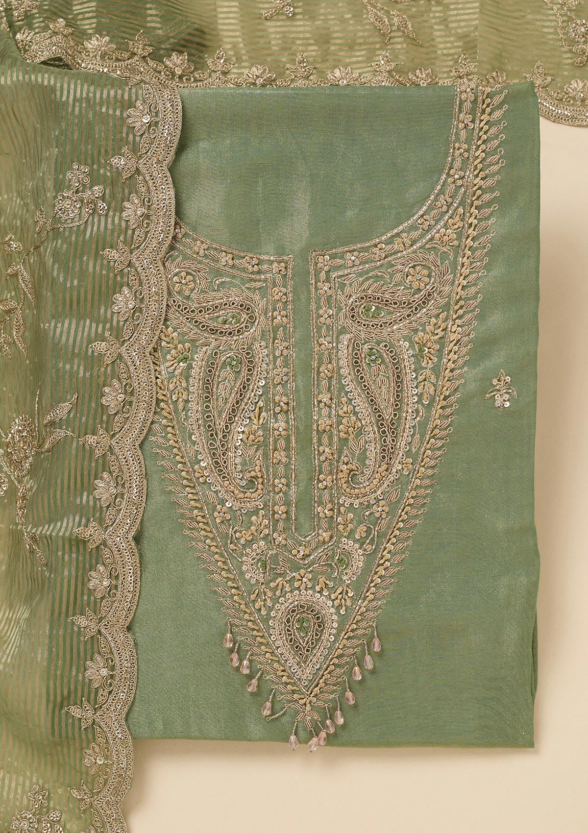 Pista Green Sequins Organza Unstitched Salwar Suit