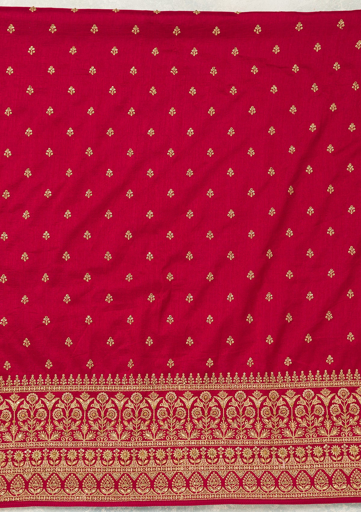 Rani Pink Salwar Suit in Soft Raw Silk fabric. The Salwar Suit is embellished with Cording embroidery. Accompanied with a bottom and dupatta. Comes with the Koskii promise of premium quality.