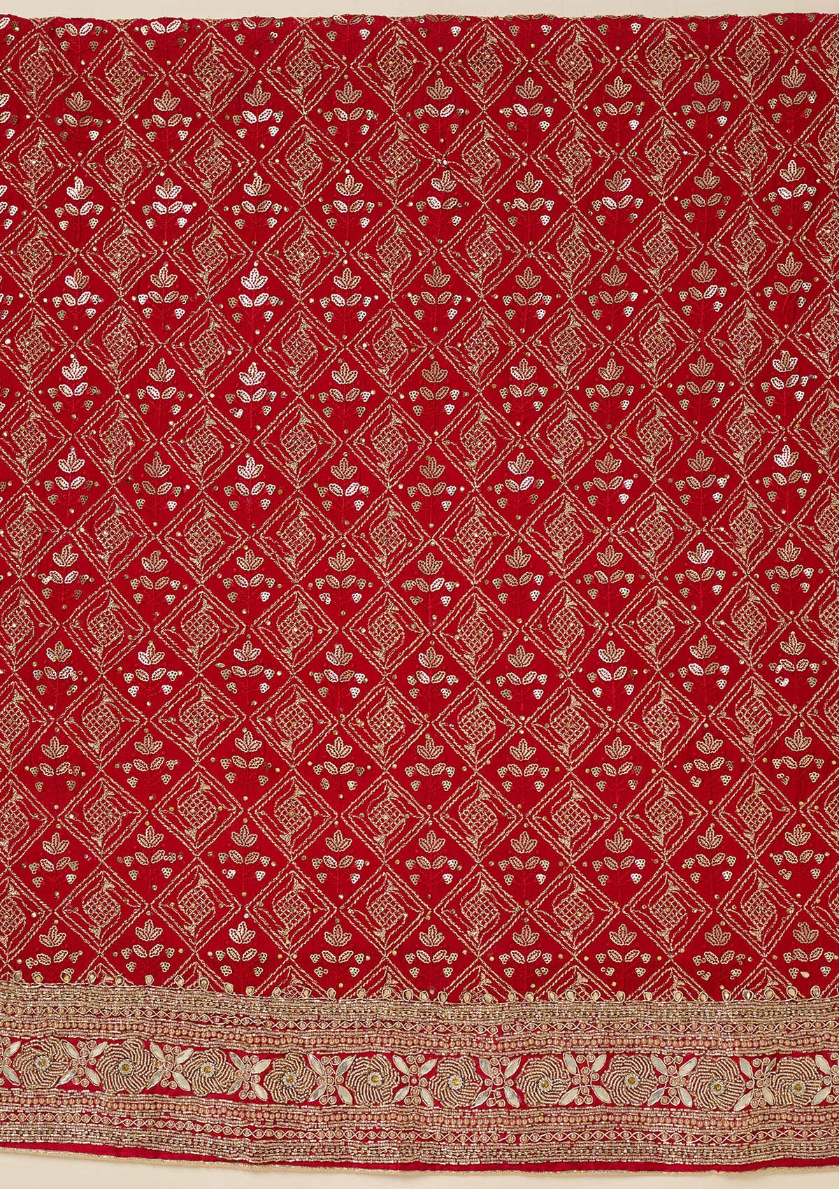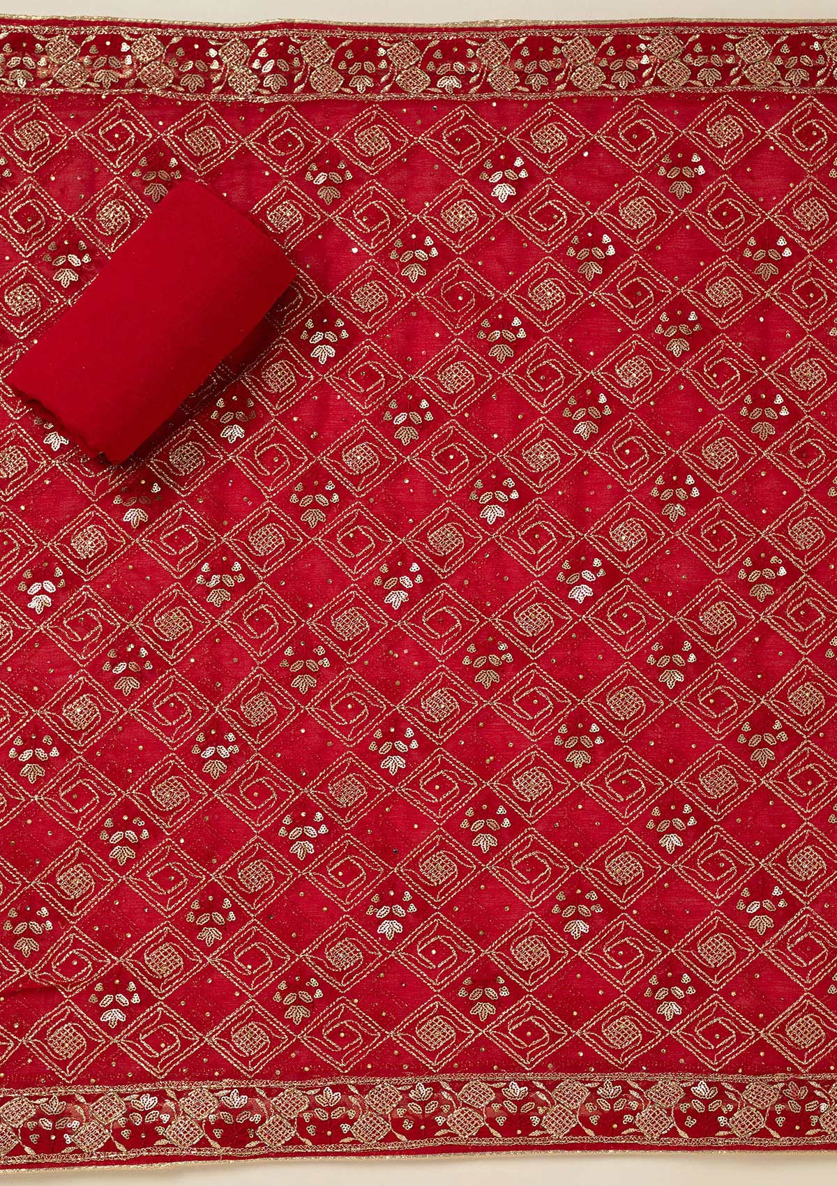 Red Salwar Suit in Georgette fabric. The Salwar Suit is embellished with Zariwork embroidery. Accompanied with a bottom and dupatta. Comes with the Koskii promise of premium quality.