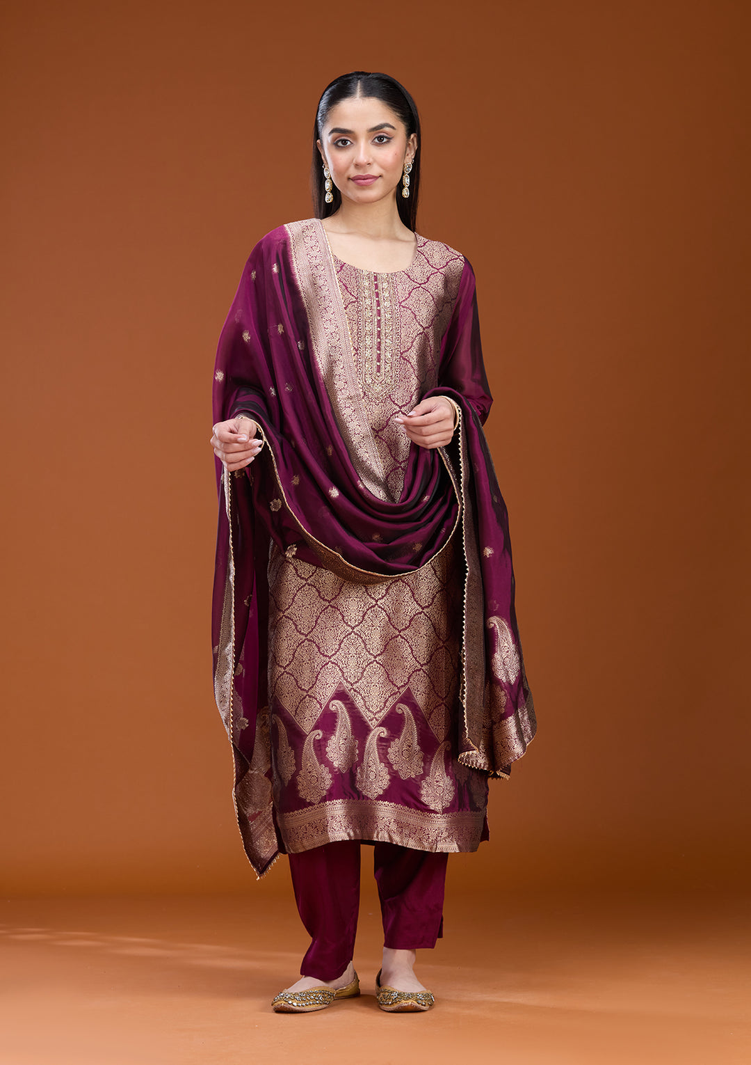 | Wine Cording Satin Readymade Salwar Suit | ₹ 5,490 | |