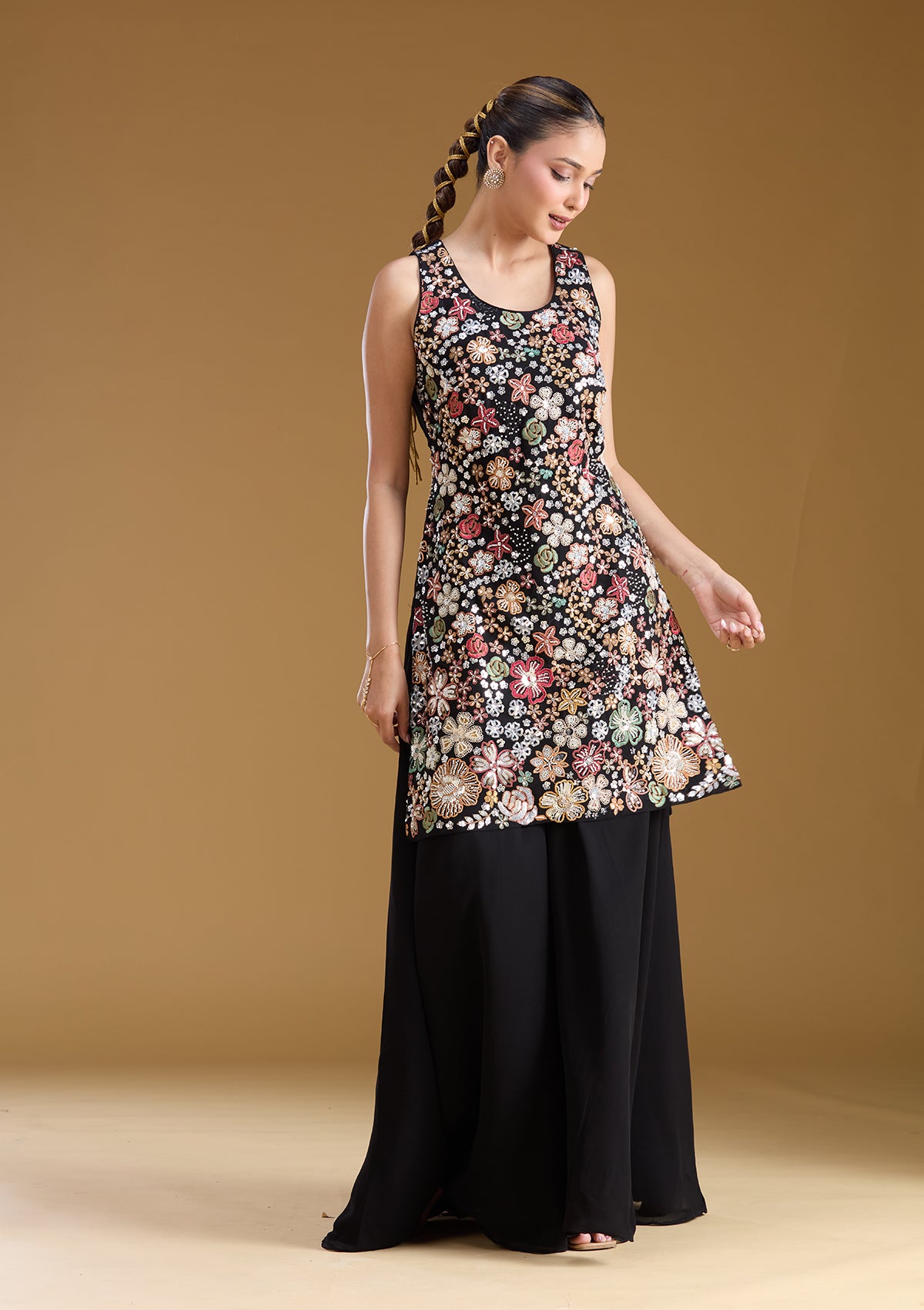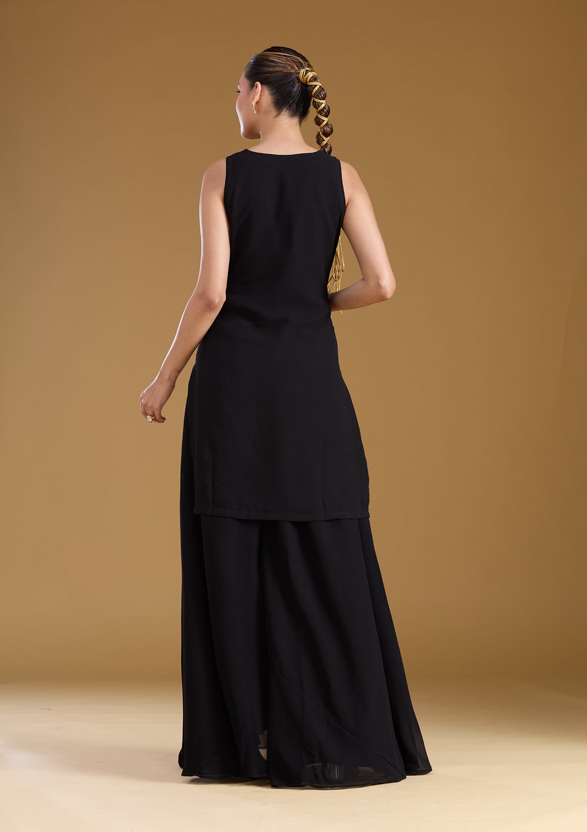 Black Salwar_RM in Georgette fabric. The Salwar_RM is embellished with Threadwork embroidery. Accompanied with a bottom and dupatta. Comes with the Koskii promise of premium quality.
