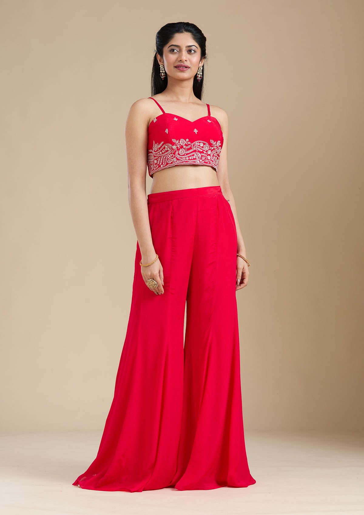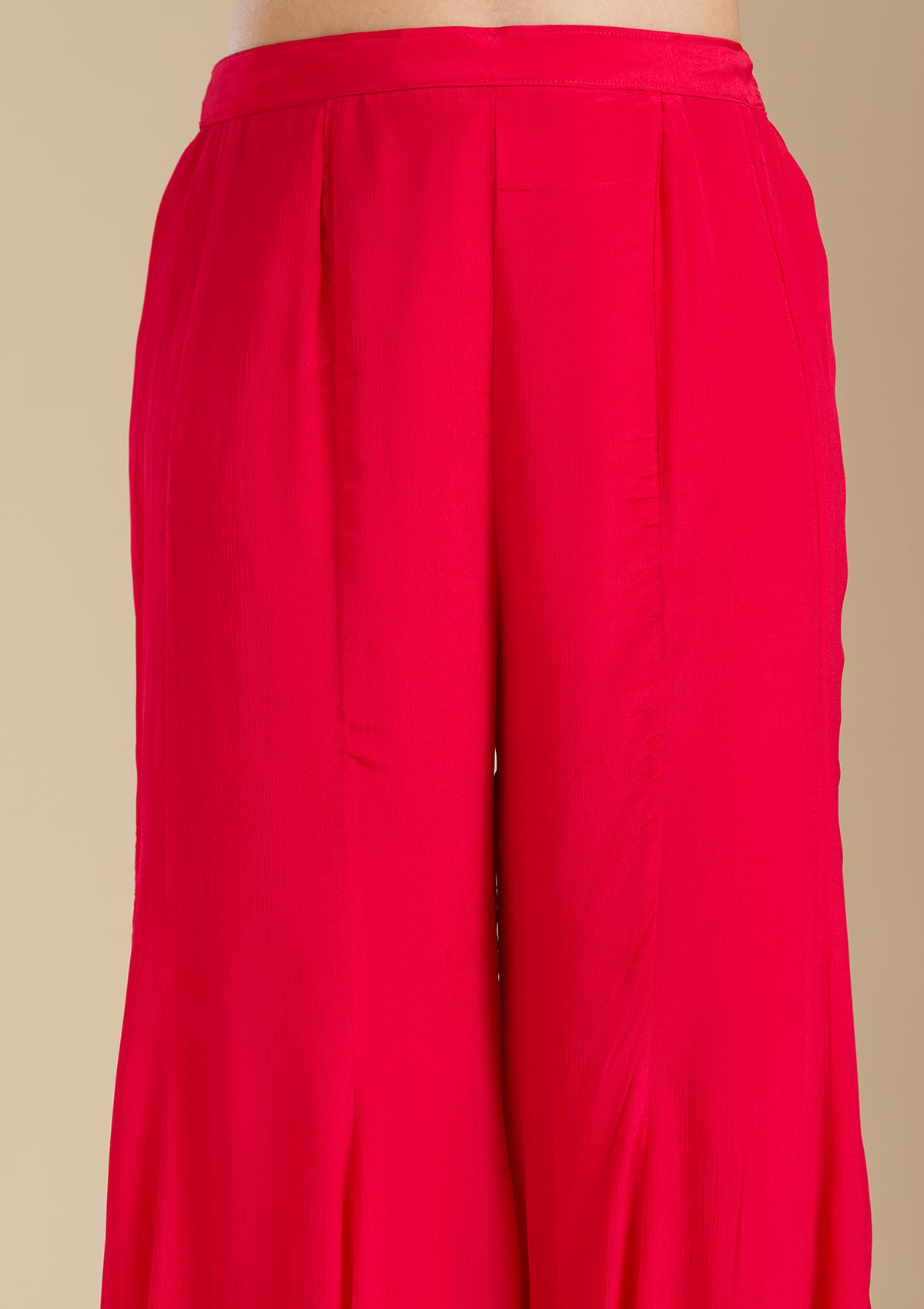 Rani Pink Salwar Suit in Chiffon fabric. The Salwar Suit is embellished with Zariwork (Gold) embroidery. Accompanied with a bottom and dupatta. Comes with the Koskii promise of premium quality.