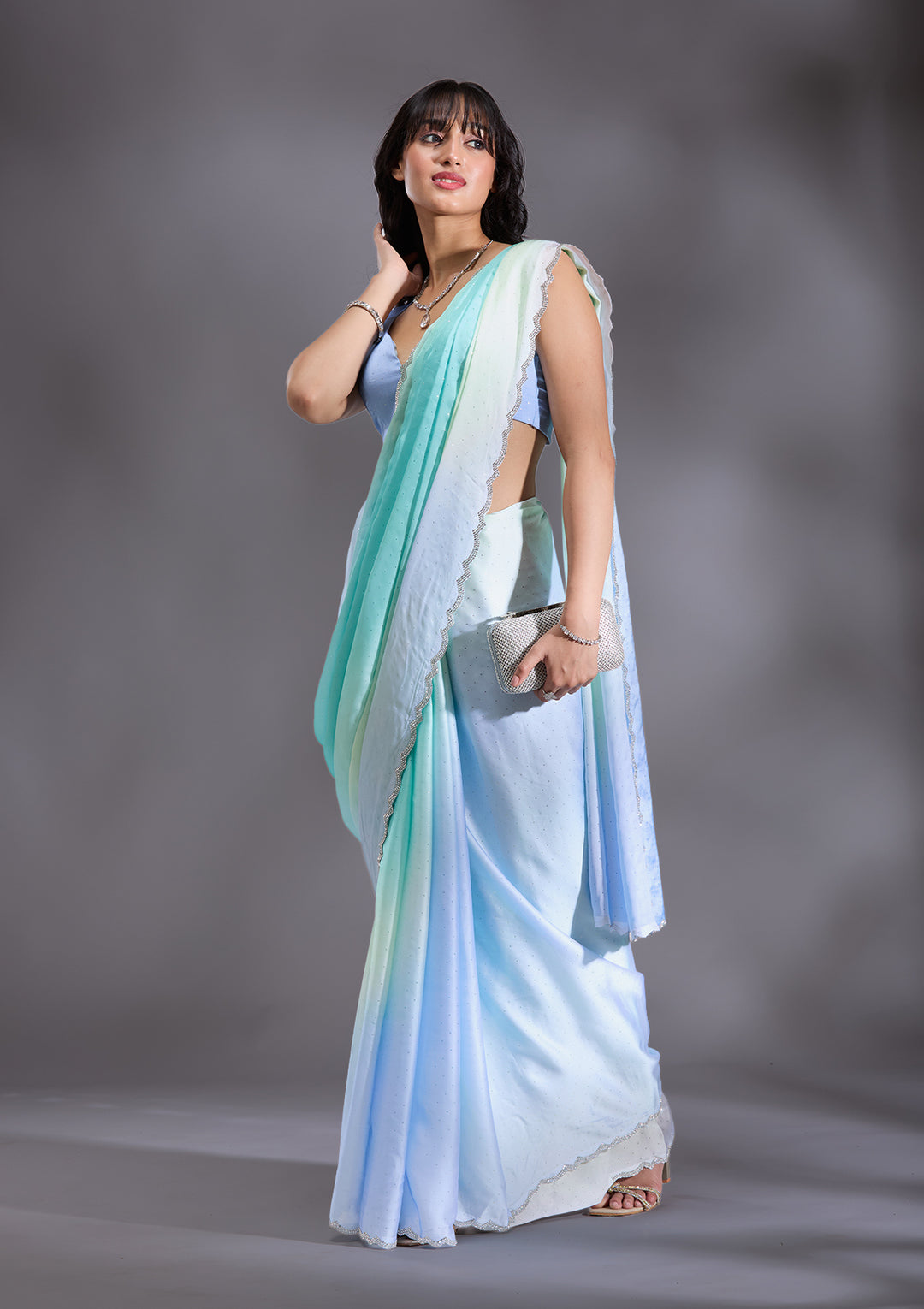 | Sky Blue Silver Stonework Satin Saree | ₹ 3,592 | |