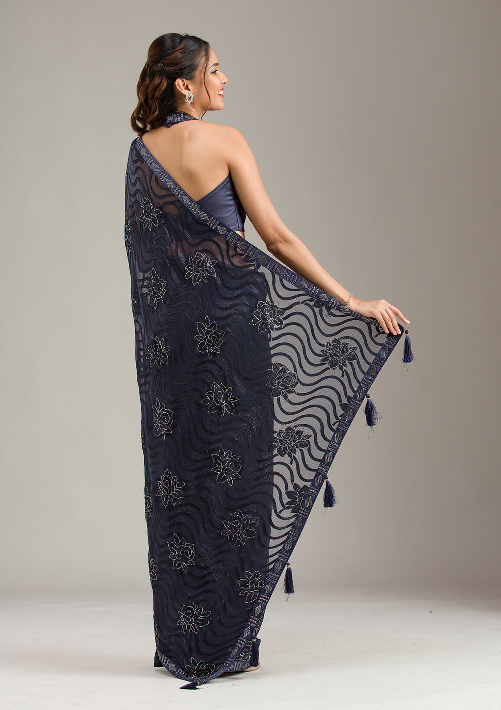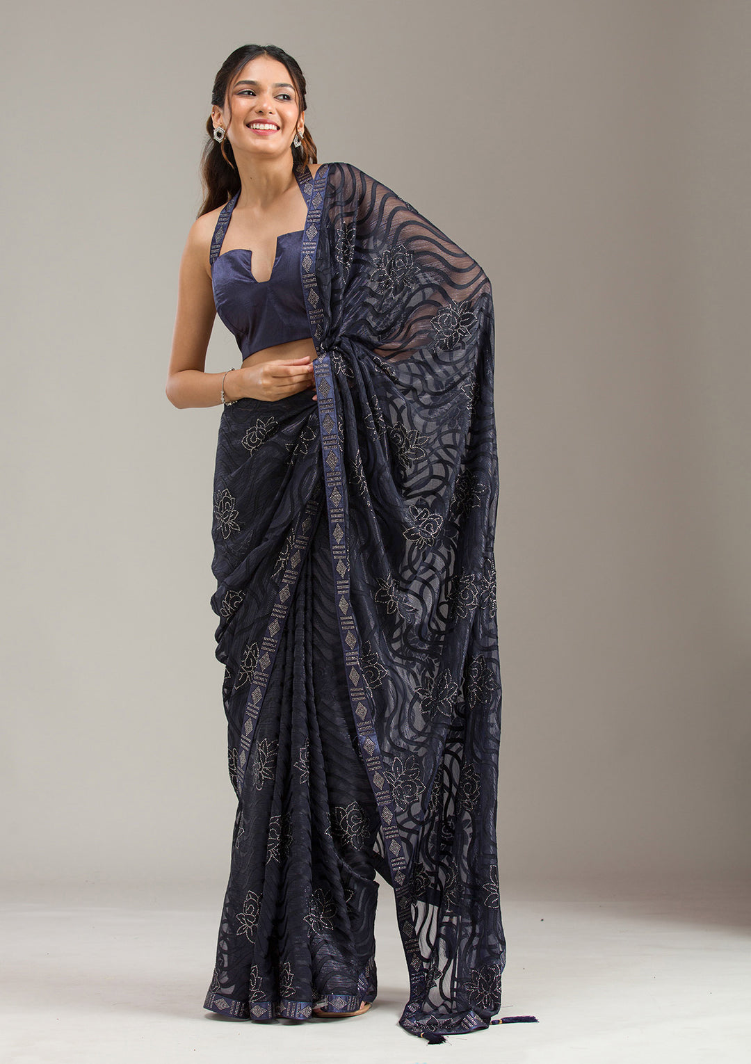 | Peacock Blue Stonework Chiffon Saree | ₹ 4,792 | |