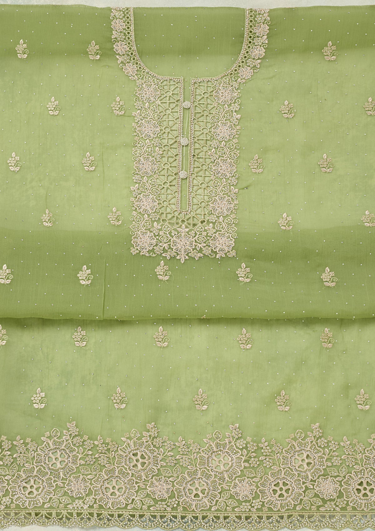 Pista Green Threadwork Tissue Unstitched Salwar Suit