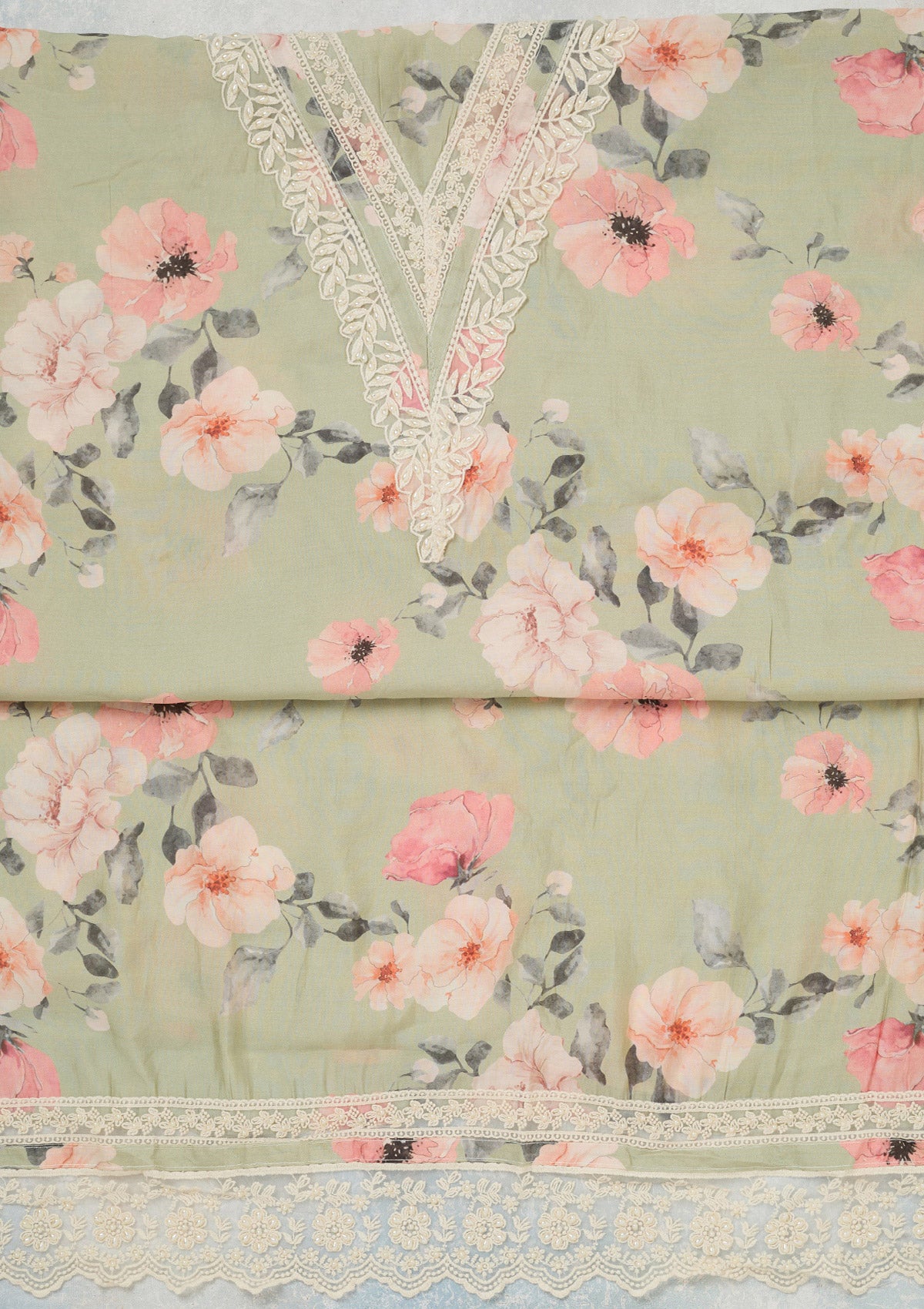 Pista Green Threadwork Crepe Unstitched Salwar Suit