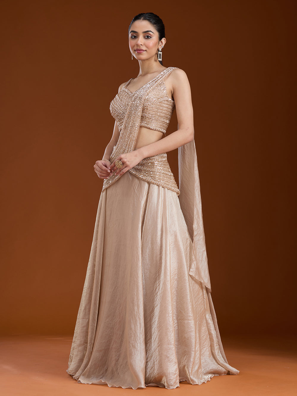 | Baby Pink Sequins Raw Silk Readymade Lehenga | ₹ 22,495 | |