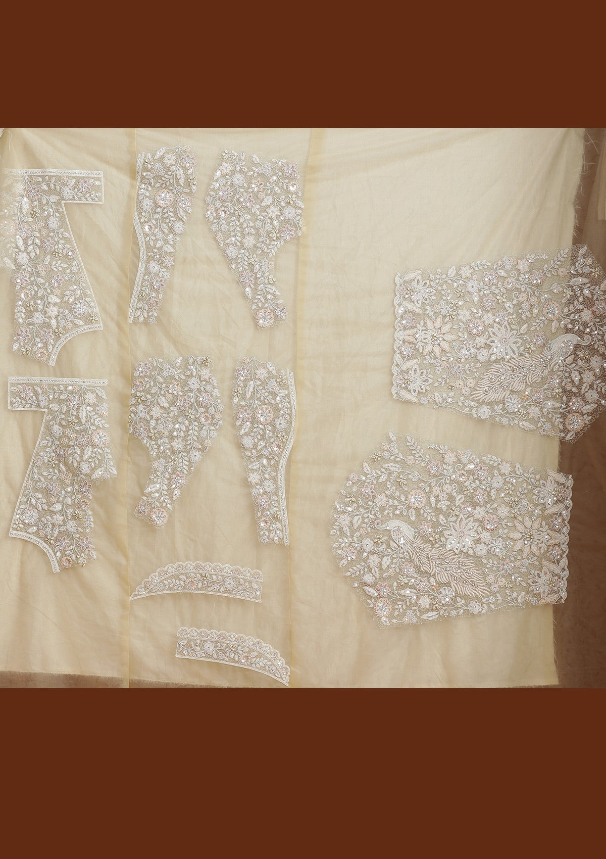 Off White Semi-Stitched Lehenga in Net fabric. The Lehenga is embellished with Threadwork embroidery. Accompanied with an Semi-Stitched blouse and dupatta. Comes with the Koskii promise of premium quality.