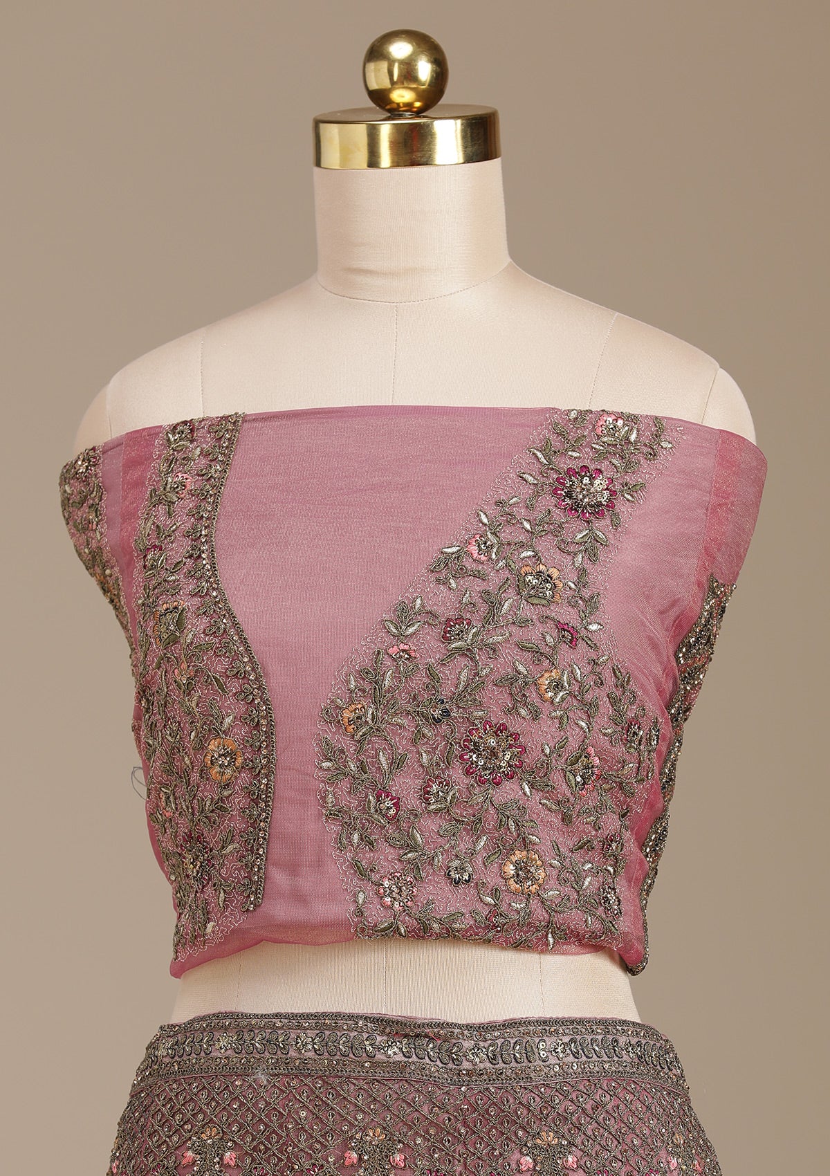 Pink Semi-Stitched Lehenga in Net fabric. The Lehenga is embellished with Cording embroidery. Accompanied with an Semi-Stitched blouse and dupatta. Comes with the Koskii promise of premium quality.