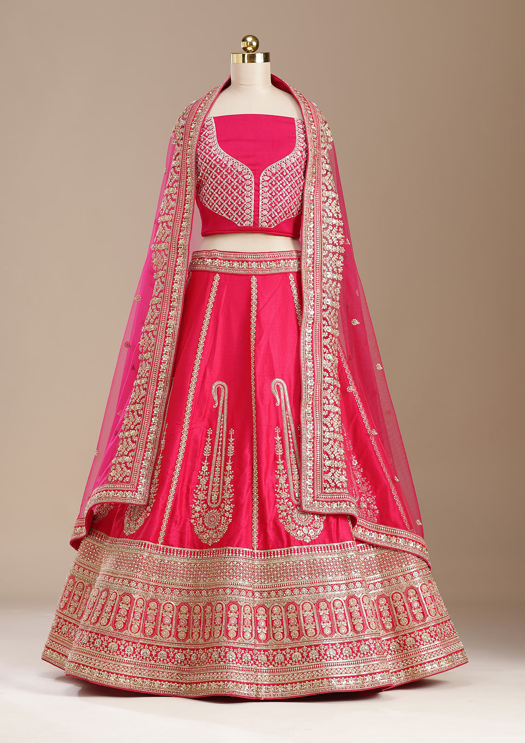 | Pink Zardosi Raw Silk Semi-Stitched Lehenga | ₹ 32,495 | |