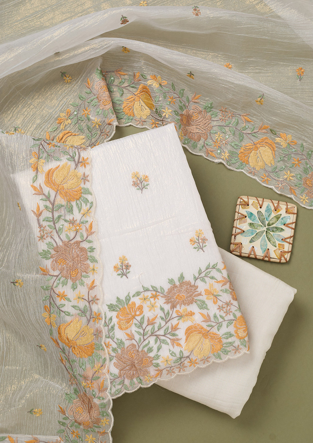 | Beige Threadwork Tissue Unstitched Salwar Suit | ₹ 6,792 | |