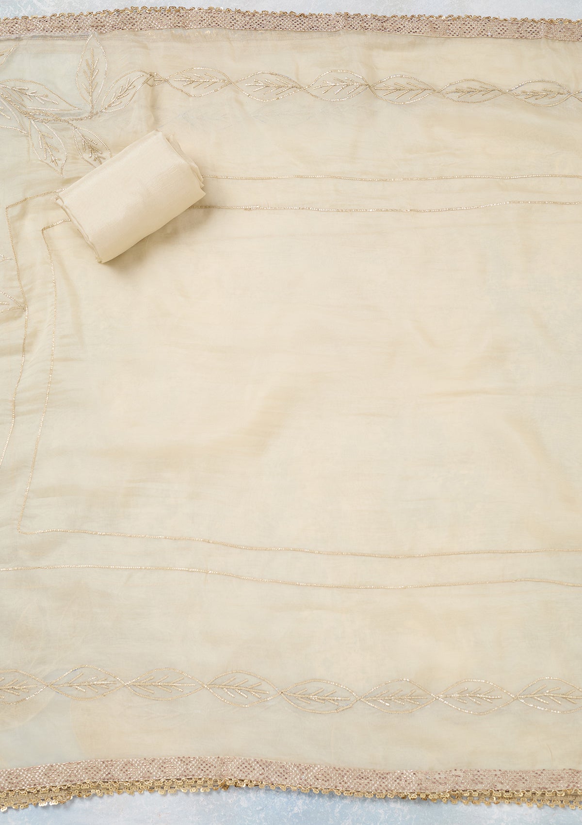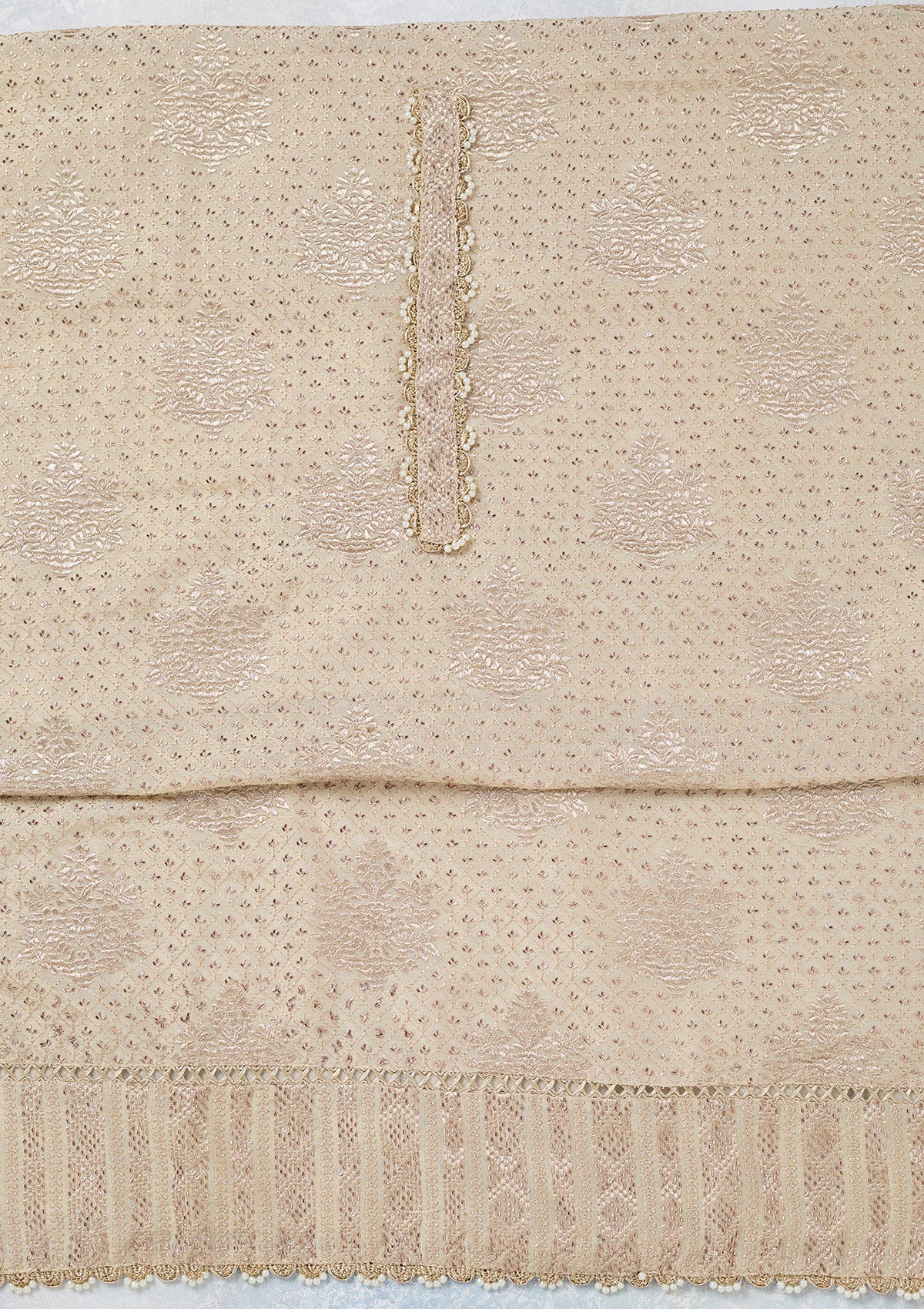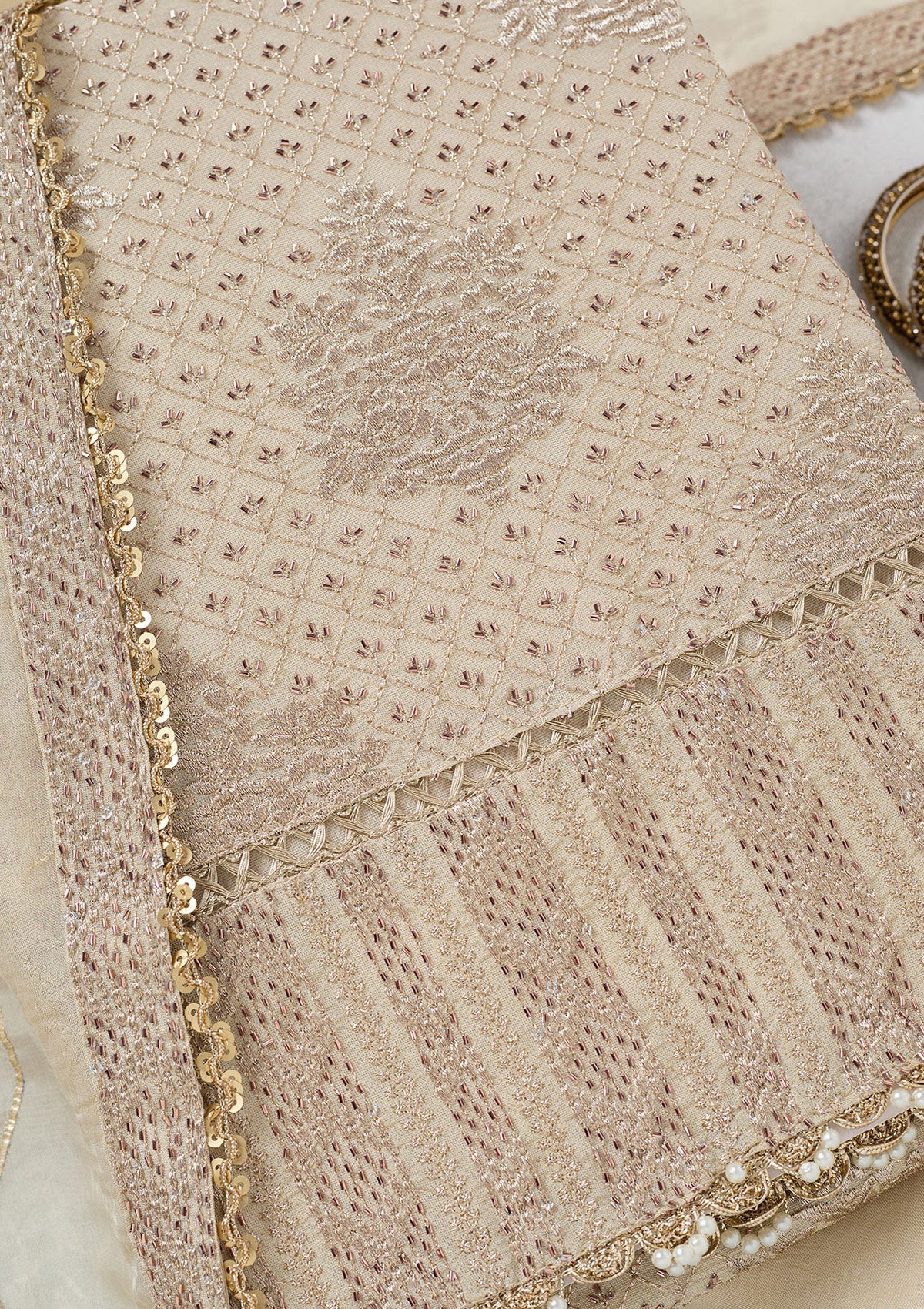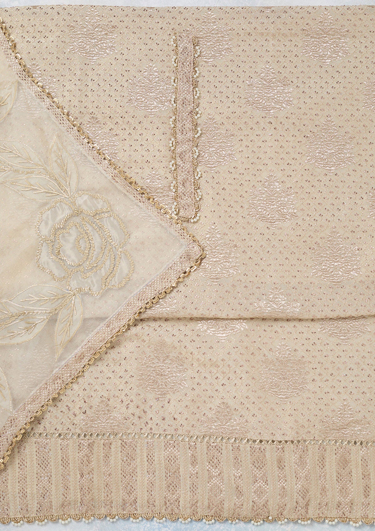 Cream Zariwork Tissue Unstitched Salwar Suit