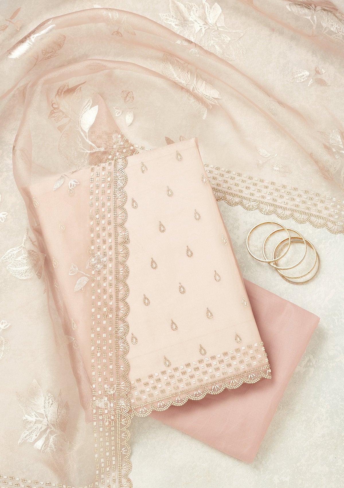 Lavender Stonework (Gold) Tissue Unstitched Salwar Suit