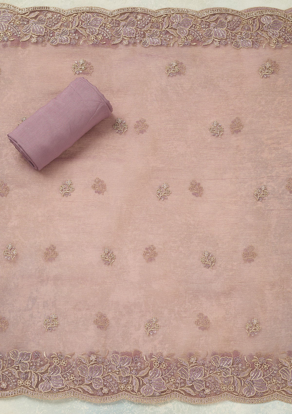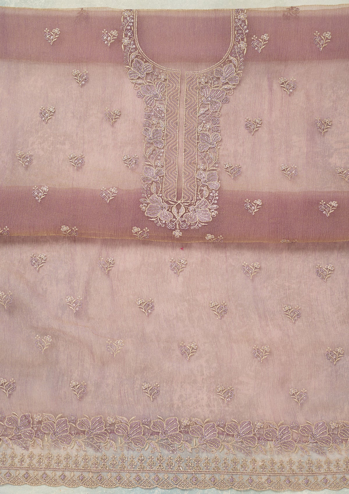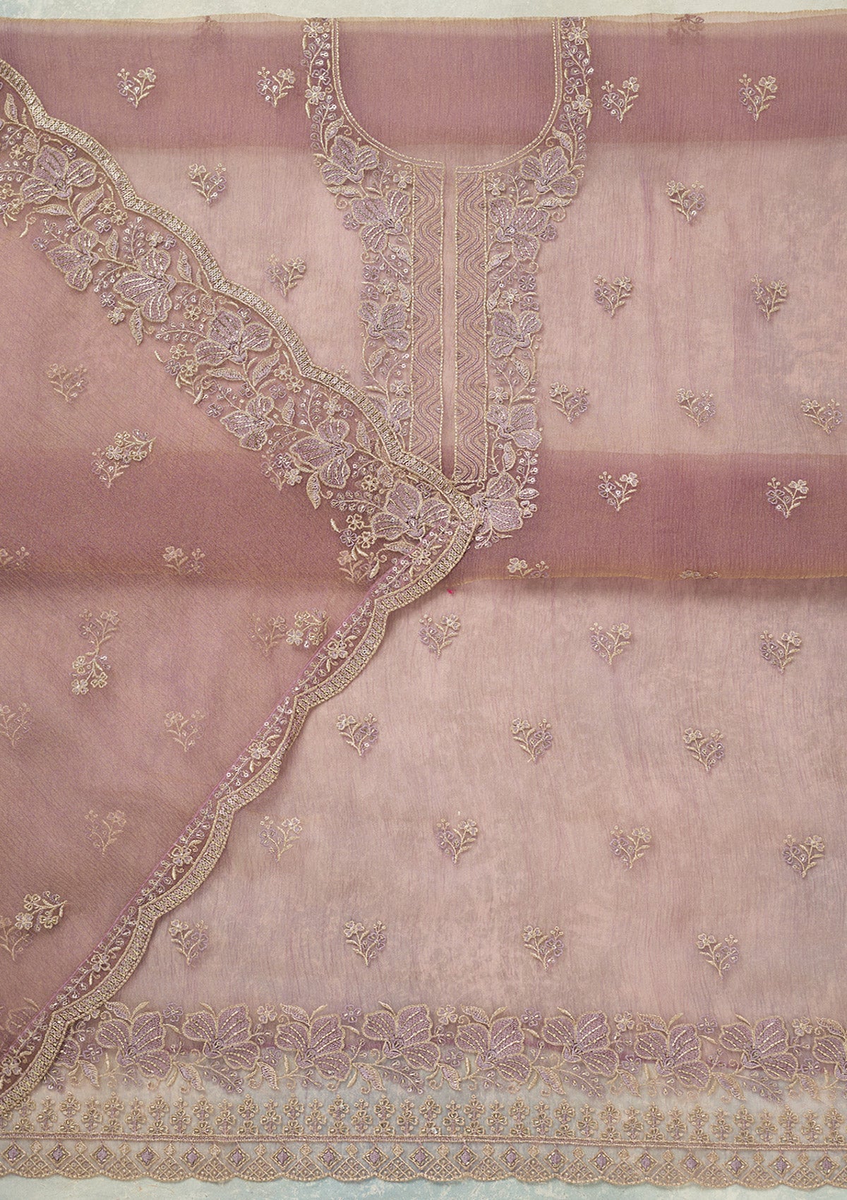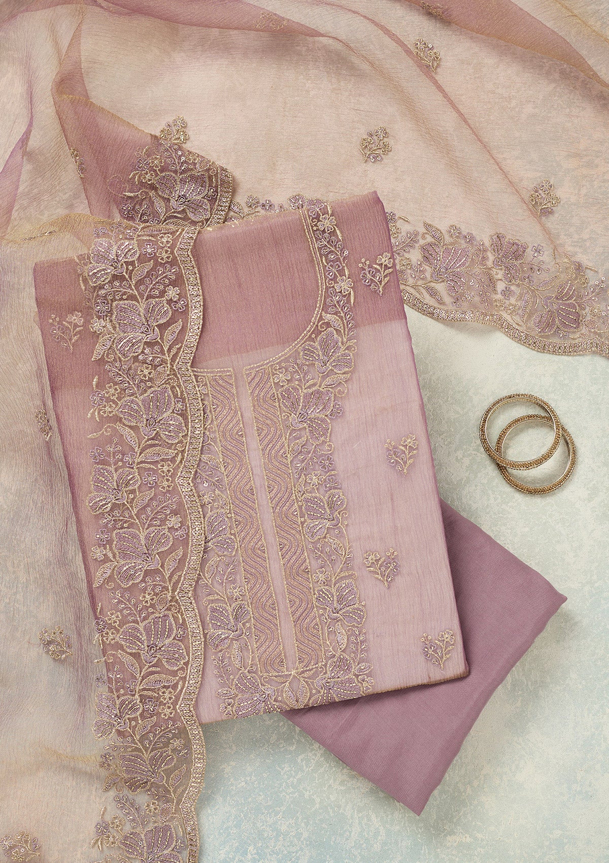 Lavender Threadwork Tissue Unstitched Salwar Suit