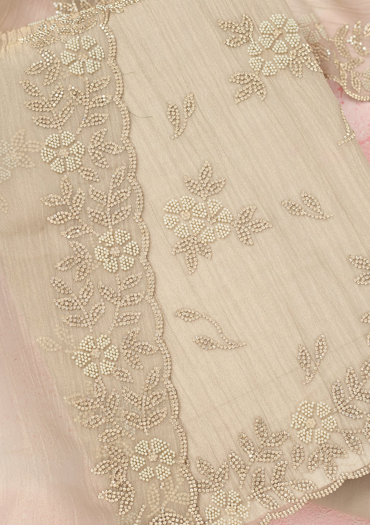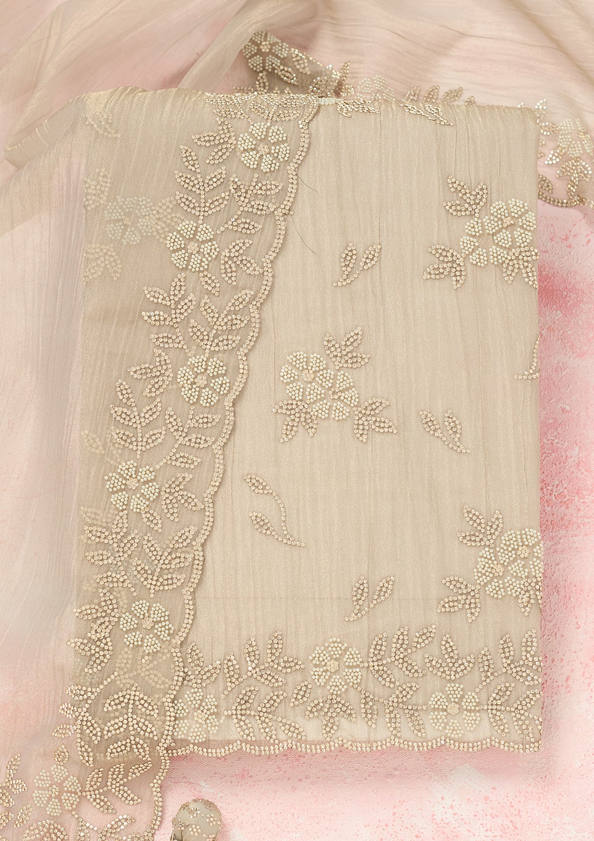 Light Grey Zardozi (Gold) Tissue Unstitched Salwar Suit
