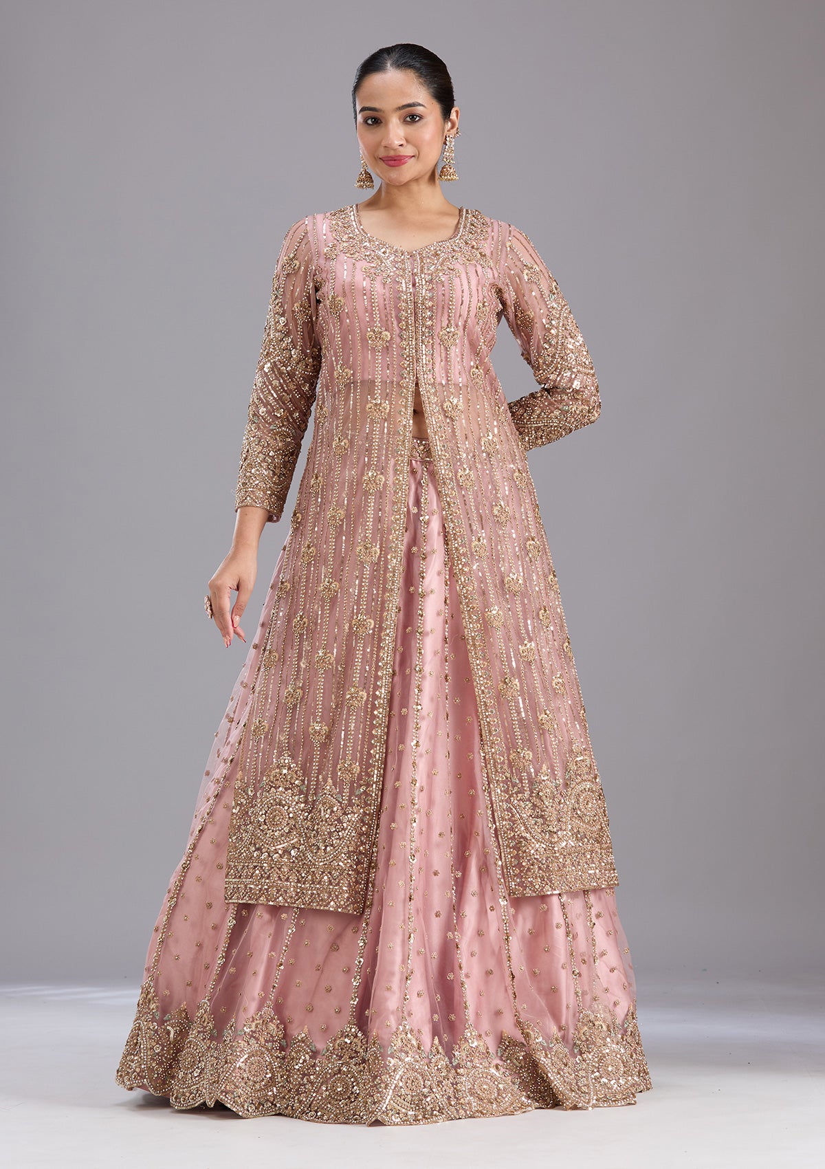Onion Pink Sequins Net Readymade Salwar Suit