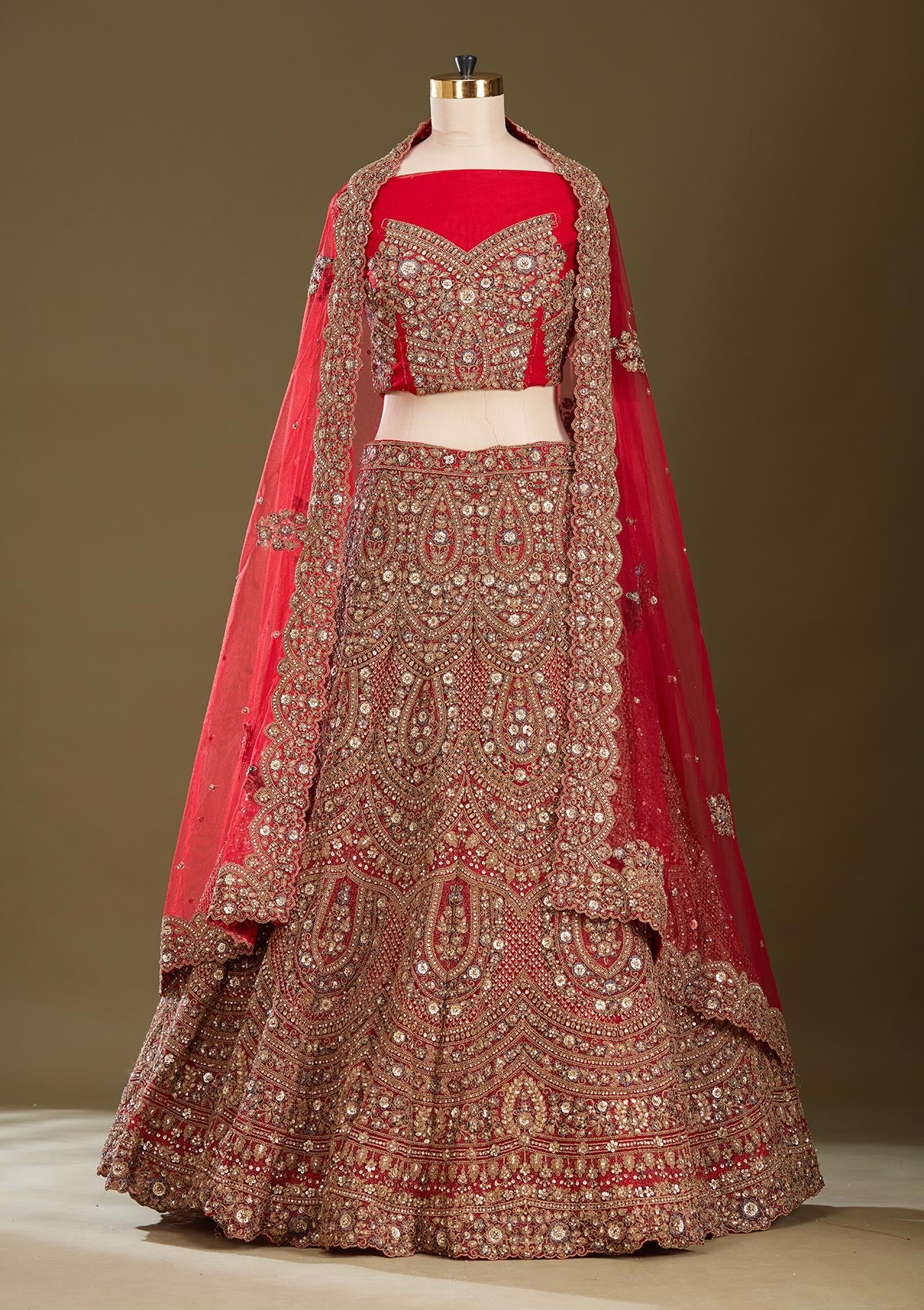 Red Readymade Lehenga in Net fabric. The Lehenga is embellished with Sequins embroidery. Accompanied with an Readymade blouse and dupatta. Comes with the Koskii promise of premium quality.