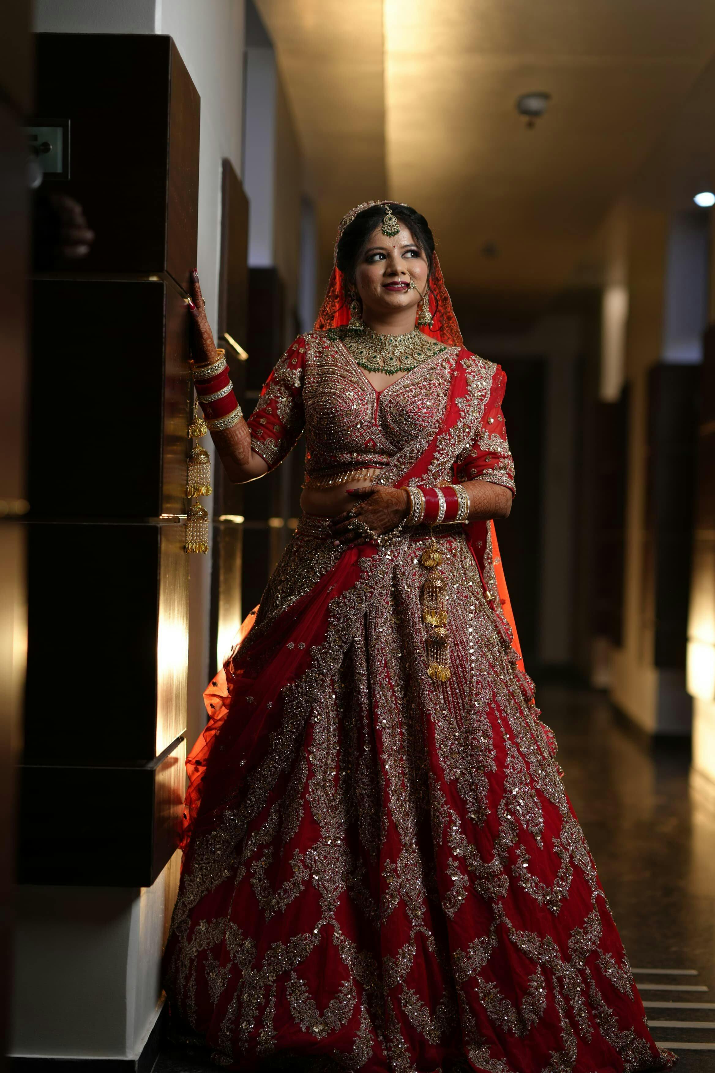 Dive into a world of enchantment with Koskii's vibrant red Net Lehenga, radiating the joy of celebration! This exquisite piece showcases meticulous zariwork embroidery that dances playfully across the fabric, reflecting a heritage of craftsmanship and the spirit of festive moments. Perfect for the bride who loves to sparkle, this lehenga combines timeless elegance with a modern twist for an unforgettable wedding day appearance.