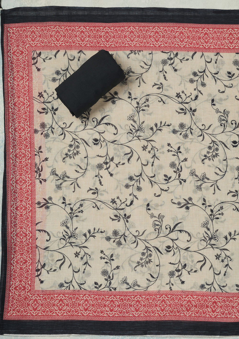 Black Threadwork Linen Unstitched Salwar Suit