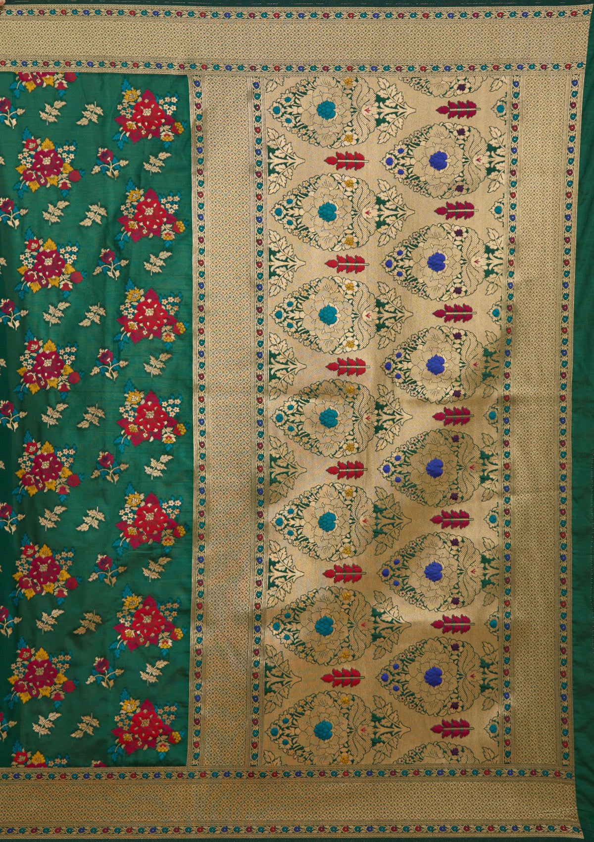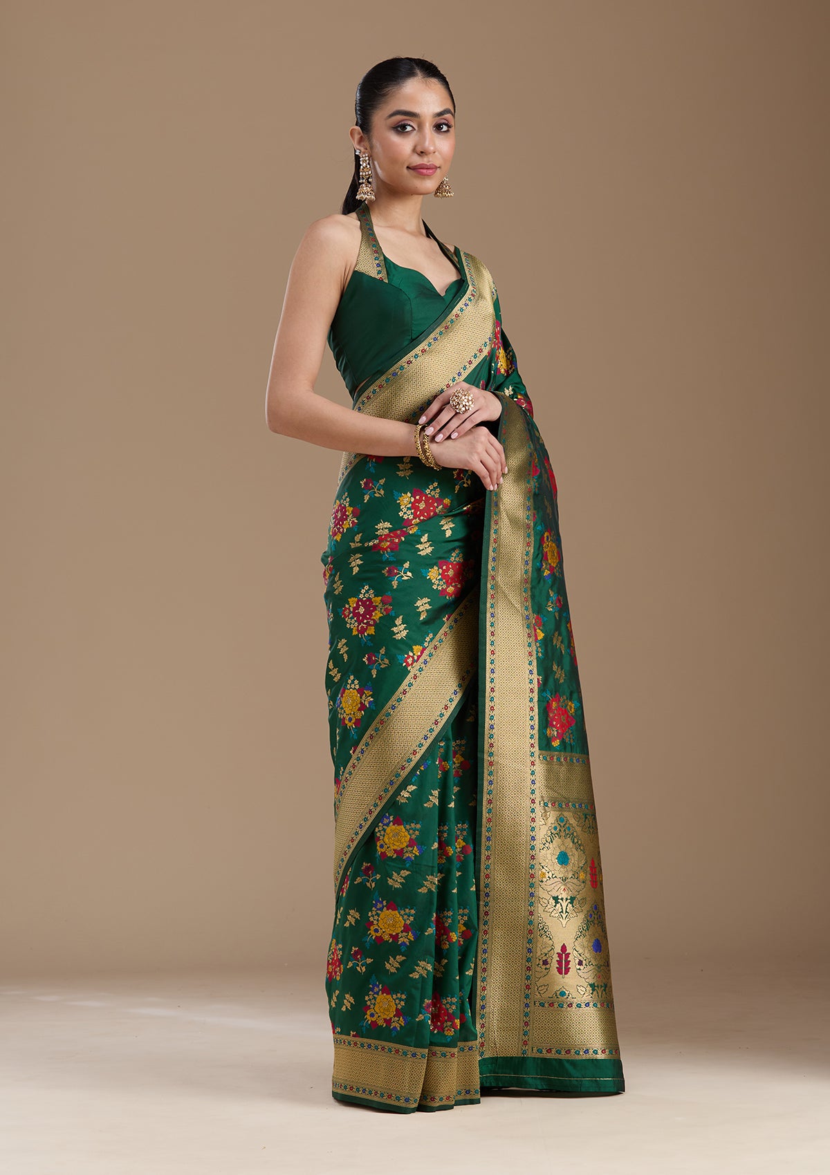Bottle Green Silk_Saree in Art Silk fabric. The Silk_Saree is elevated with Zariwork embroidery. It comes with an Unstitched blouse. Comes with the Koskii promise of premium quality.