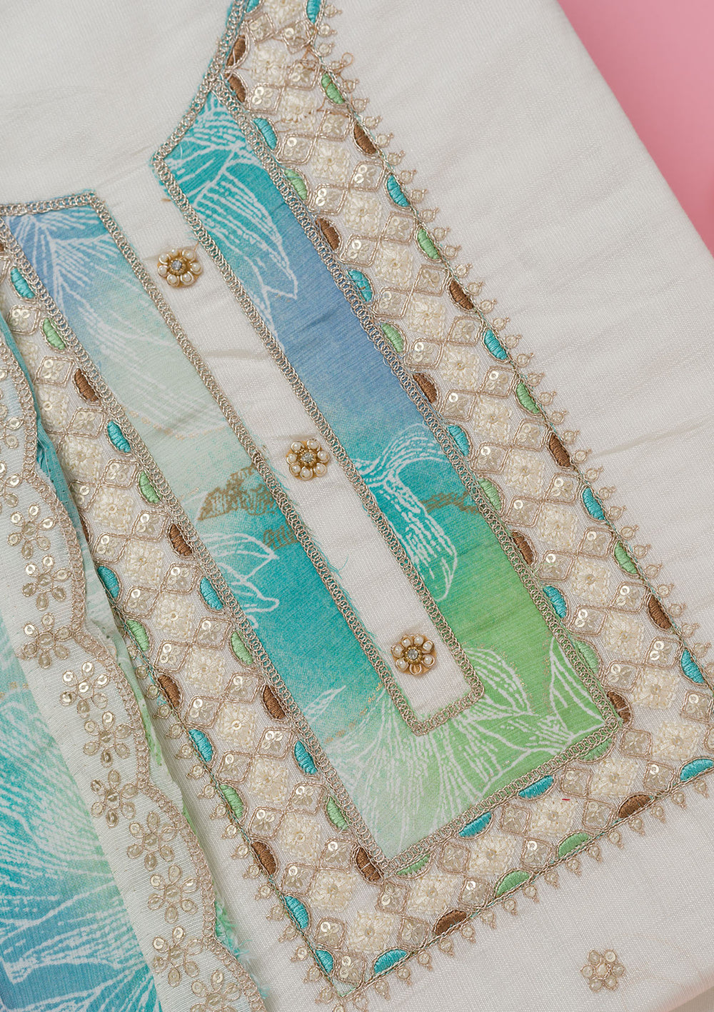 Cream Zariwork Dola Silk Unstitched Salwar Suit