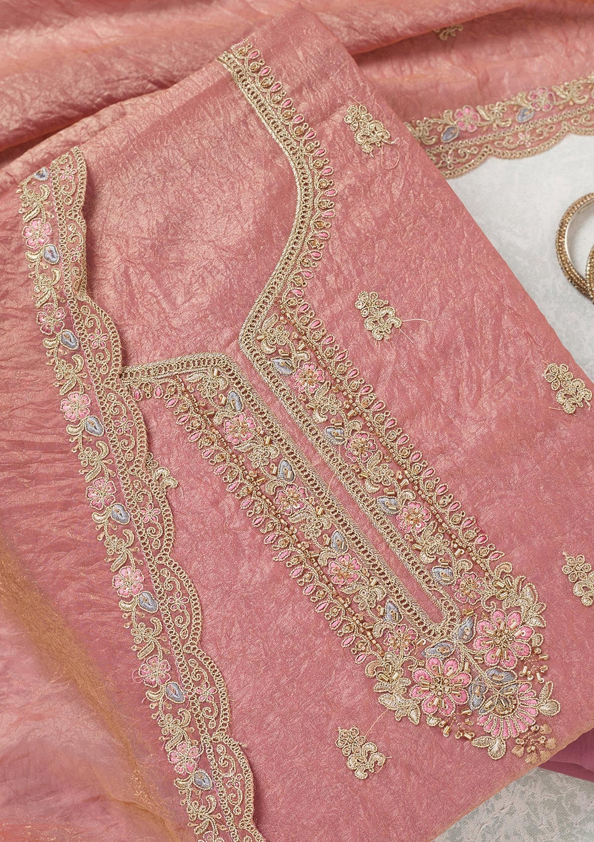 Onion Pink Aariwork Tissue Unstitched Salwar Suit