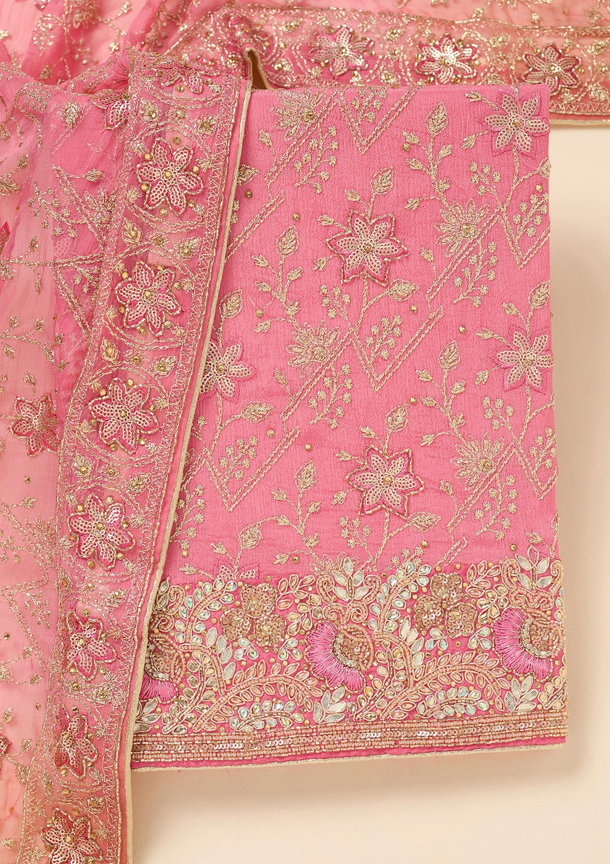 Pink Zariwork Georgette Unstitched Salwar Suit